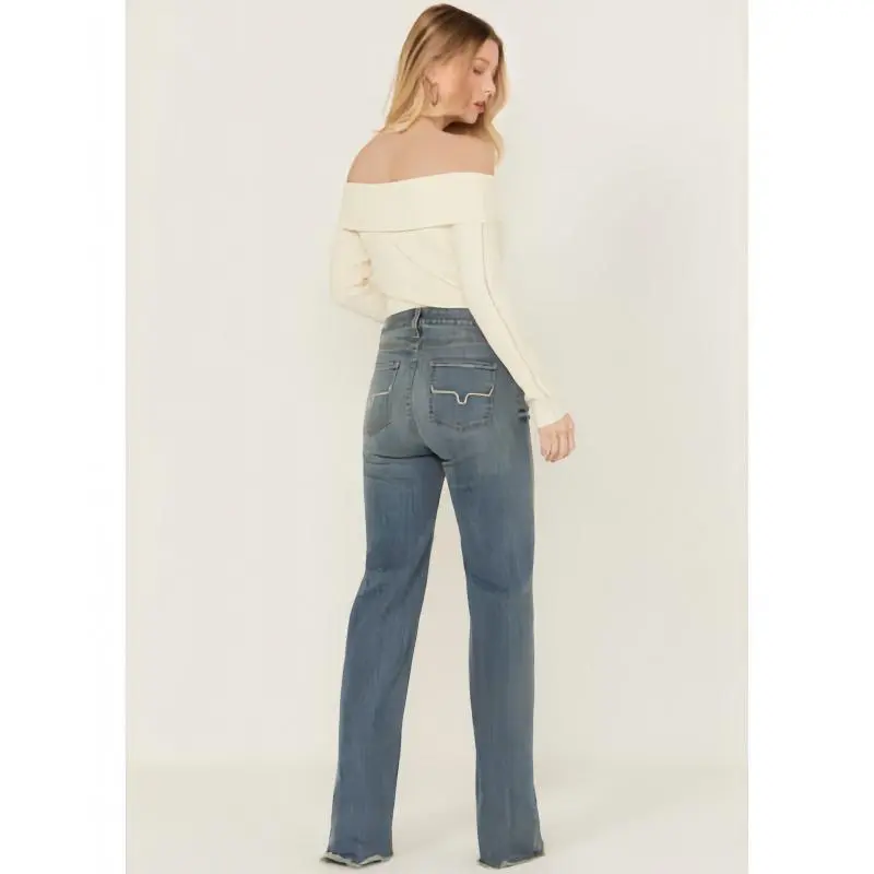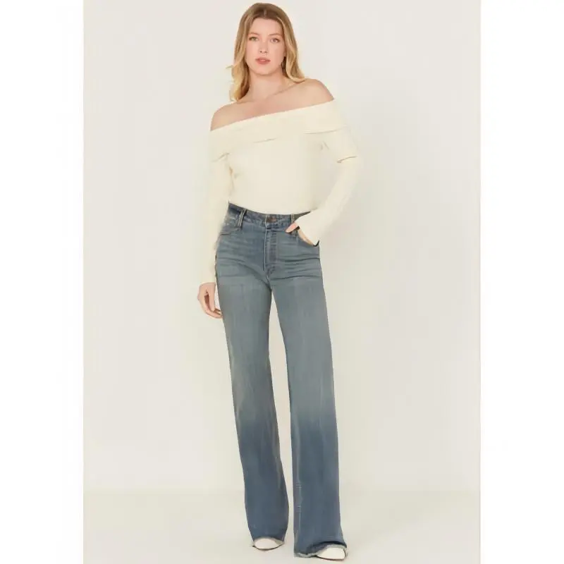 Women's Olivia Medium Wash High Rise Wide Leg Jeans palazzo jeans Streetwear Bottom 82% Cotton 15% Polyester 3% Elastane Lightweight Tri-Blend Denim