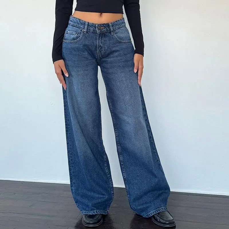 Y2K Baggy Jeans for Women Trendy Low Rise Casual Straight Leg Boyfriend Jeans Denim Pants with Pocket Streetwear