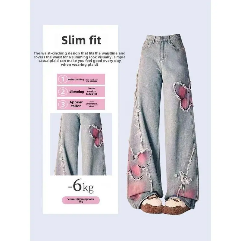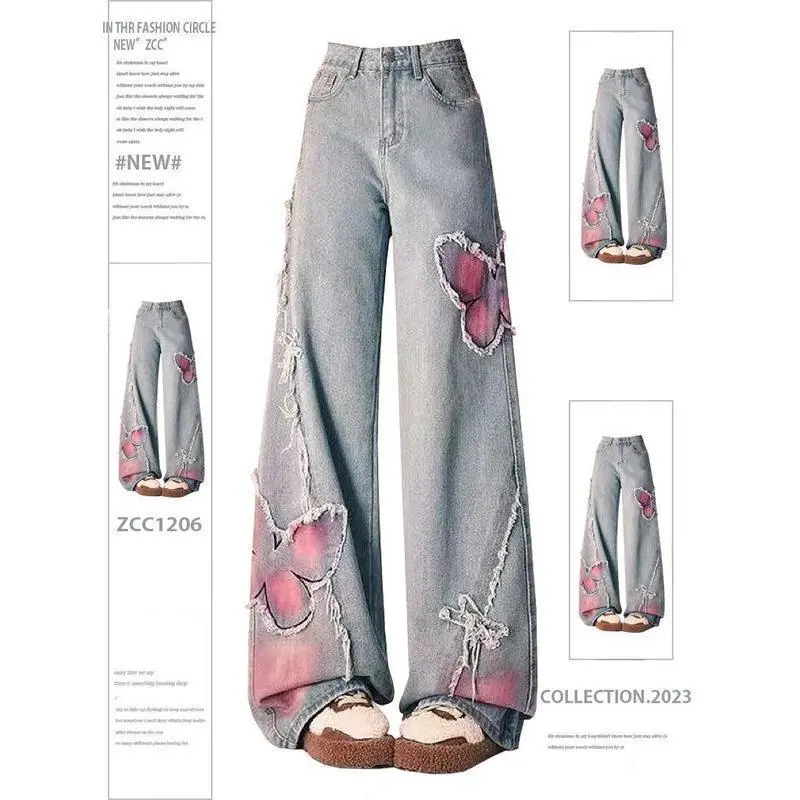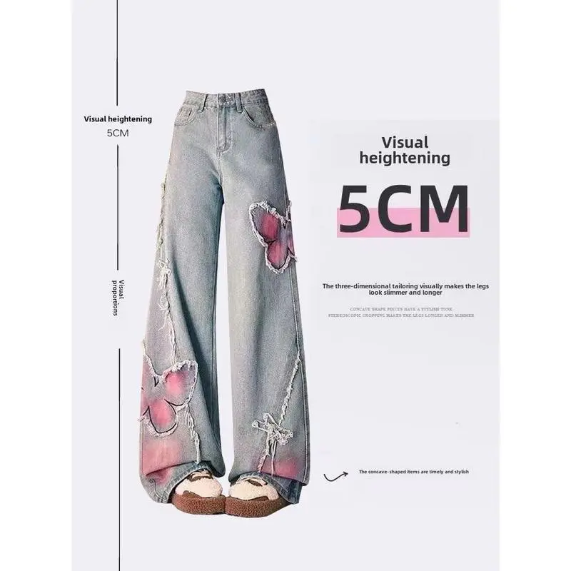 Popular American Tie-dye Butterfly Embroidered Flared Jeans for Women