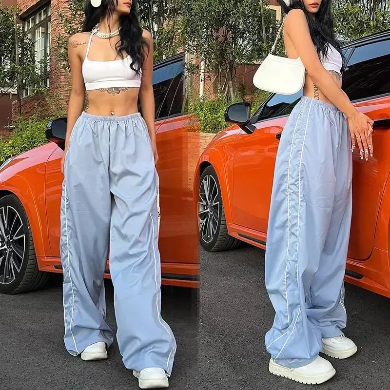 Ommig Women's TikTokShopBlackFriday Parachute Wideleg Pants ✨ Elevate your casual style with the Ommig Women's TikTokShopBlackFriday Parachute Wideleg Pants. These baggy Y2K pants feature an elastic waist for comfort. Perfect for track pants or casual wear, they offer a wide leg design. 🌟