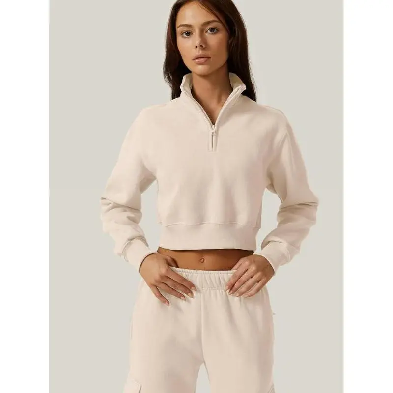 [Not a set, needs to be ordered separately] 50% cotton,50% polyester,Runs small,order one size up for better fit. Features with high neck(stand collar),half zip,long sleeve,inside fleece,soft,comfortable wear. Athleisure fit in this sporty zipper up top featuring about 20"(the whole length from neck to hem measured size s), 2" (the neck length). The mock neck crop sweatshirt is lightweight,perfect paired with high-rise pants,great for daily commute,walking,hiking,skiing,travel or any other your favorite outdoor activities in cold weather. Hand wash or delicate cycle,no bleach.Warm for late Fall,Winter,early Spring. Runs Small,one size up for better fit.Detail size reference please go to the size chart below the page or the images.