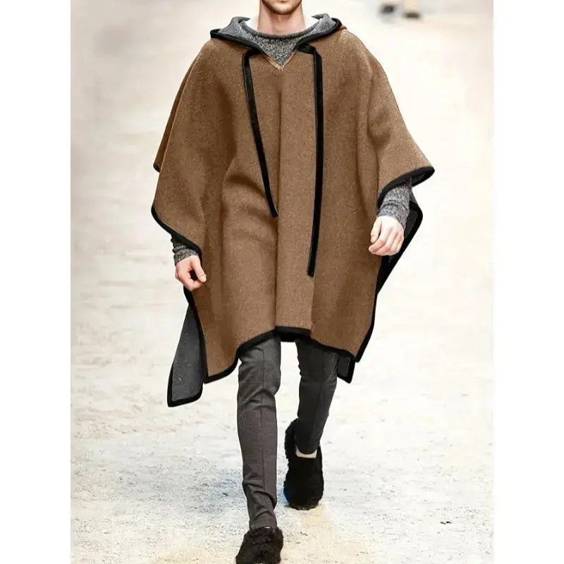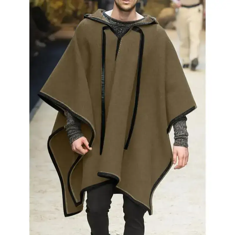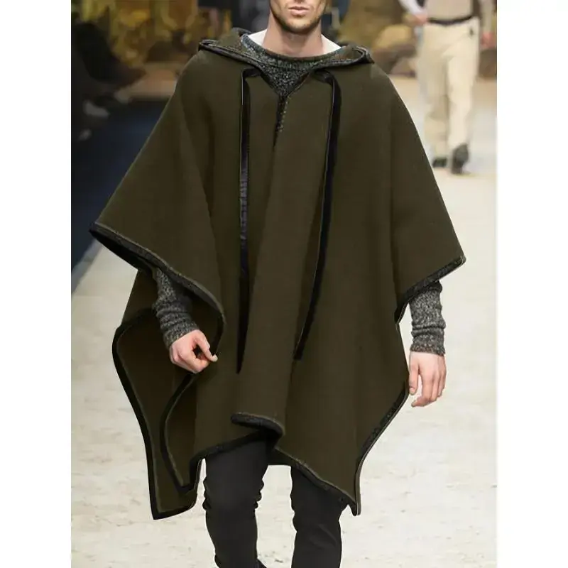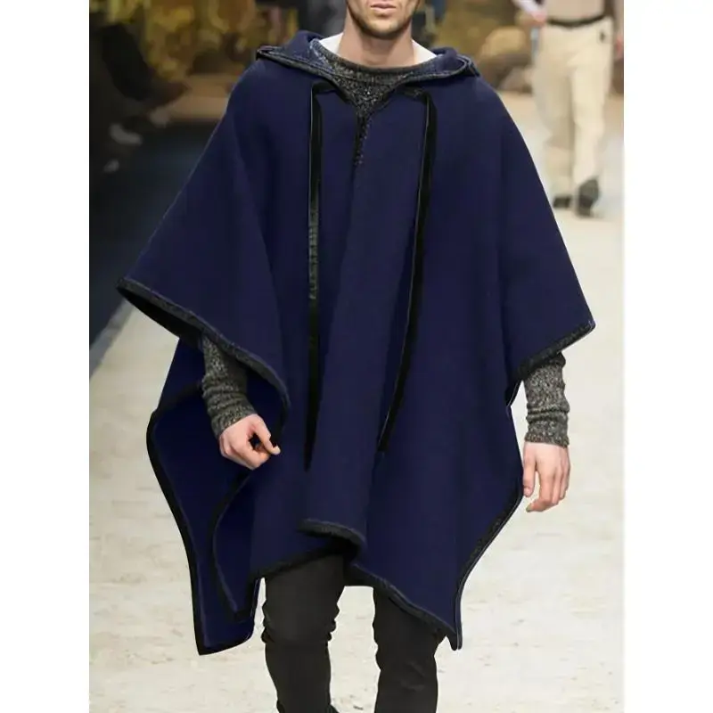 Men's Casual Long Sleeve Poncho, Hooded Jacket Menswear Coats