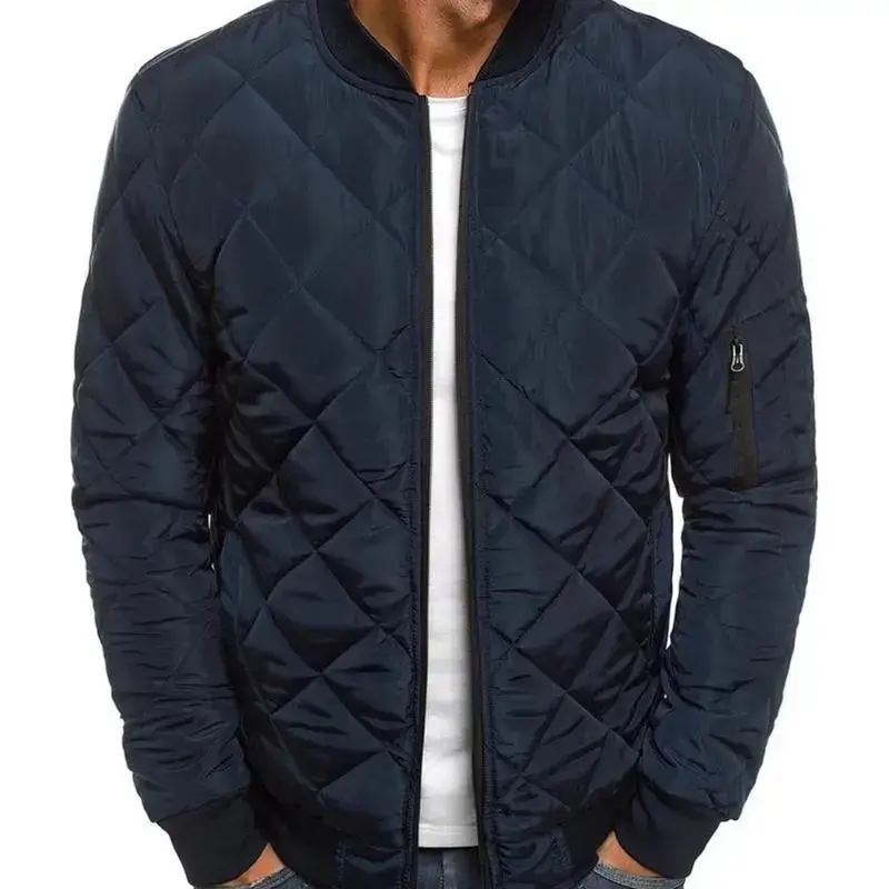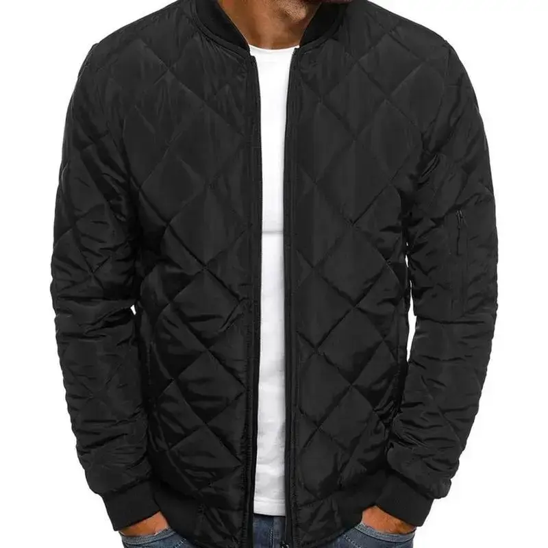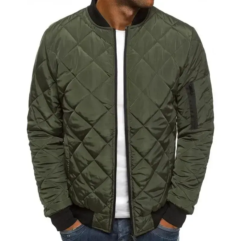 Men Flight Bomber Jackets Diamond Quilted Lightweight Varsity Jacket Full Zip Up Coat
