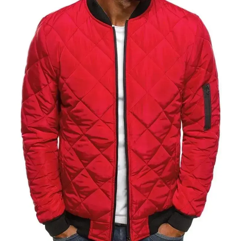 Stay stylish and warm with our Men's Flight Bomber Jacket. This sleek and modern jacket features diamond quilted detailing that adds a touch of sophistication to your outfit. The lightweight design makes it perfect for year-round wear, while the full zip-up front ensures a comfortable, snug fit. Crafted with high-quality materials, this jacket is built to last. The Varsity Jacket style is perfect for dressing up or down and can be paired effortlessly with any outfit in your wardrobe. Whether you're running errands or heading out for a night on the town, this Men's Flight Bomber Jacket is sure to turn heads. With its versatile design and functionality, it's no wonder why our customers love this jacket so much! Don't miss out on the opportunity to add this must-have piece to your wardrobe today!