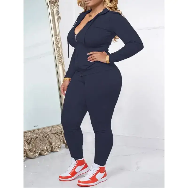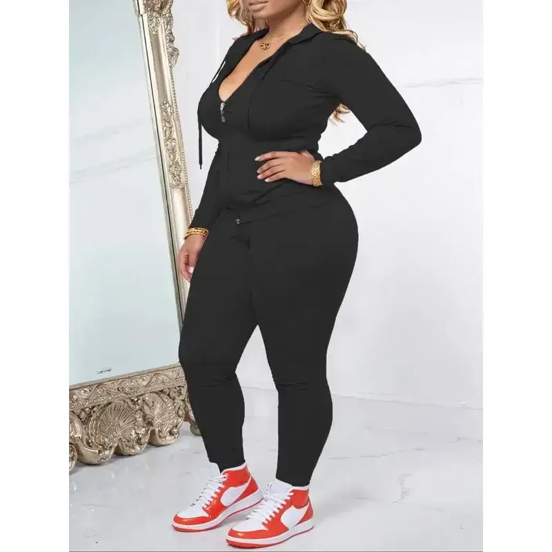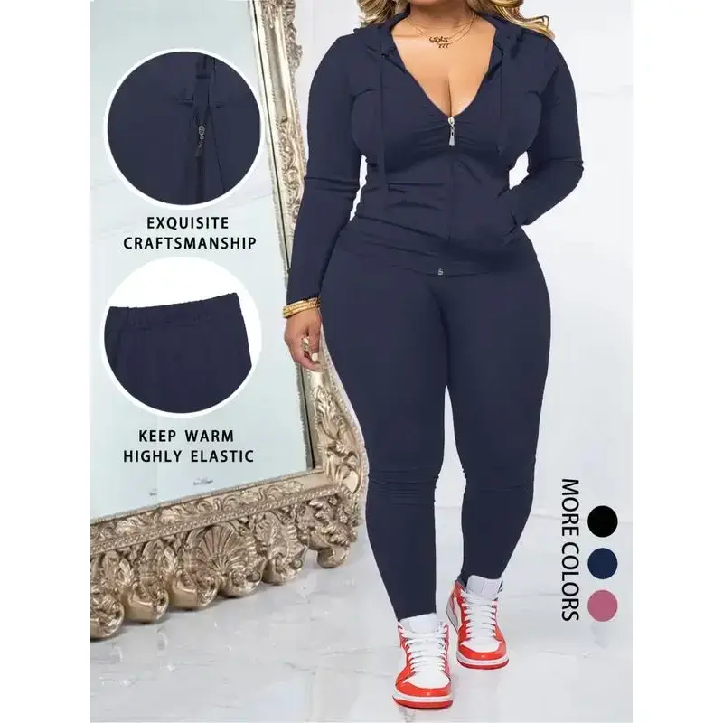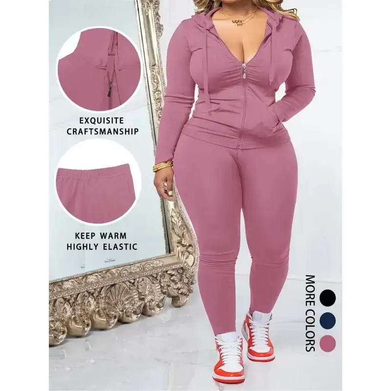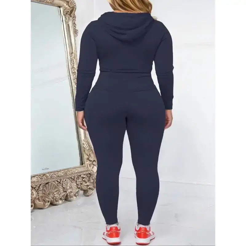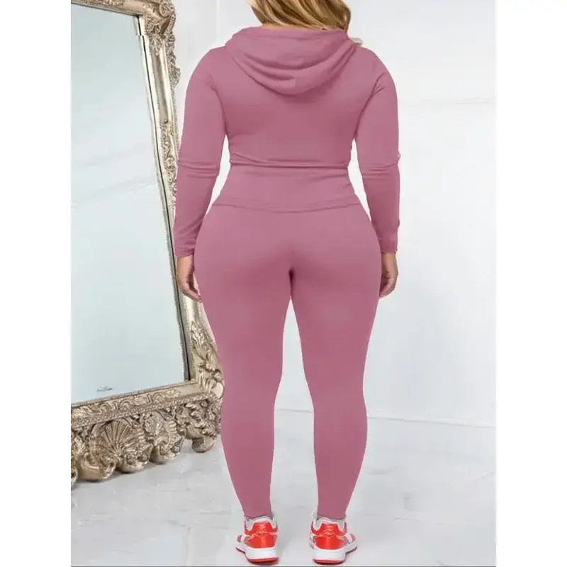 Women's Plus Size Two-Piece Set, Casual Fitness, Zipper Long Sleeve Jacket & Sports Pants, Fall Winter Oversized Fit, Sweatsuits Set