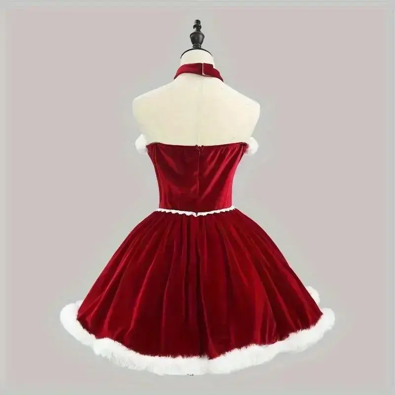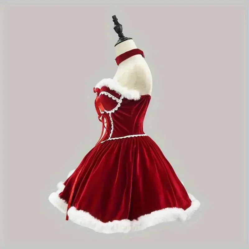 ?? Product Overview ?? ? This Christmas Lolita dress set showcases a sumptuous burgundy velvet design, blending festive charm with vintage elegance. The ensemble includes a hooded cape and a matching A-line dress, both trimmed with plush white faux fur for a cozy, luxurious feel. The cape features fluffy pom-poms, delicate lace accents, and a large fur-lined hood, while the dress boasts a fitted bodice with intricate white lace detailing, a ribbon tie, and a fur-trimmed hem that creates a flattering, whimsical silhouette. Crafted from high-quality velvet, the set offers both comfort and durability, making it ideal for Christmas parties, Lolita-themed events, or festive photo shoots. The rich burgundy hue paired with white fur trim perfectly captures the holiday spirit, while the Lolita-style elements bring a romantic, doll-like aesthetic. Whether worn as a complete ensemble or styled with other accessories, this outfit merges festive warmth with couture-level detailing, making it a standout choice for anyone seeking a glamorous, retro-Christmas look. 500 ?? 400 ?? ?? Material and Style ?? ?? Additional Details ??