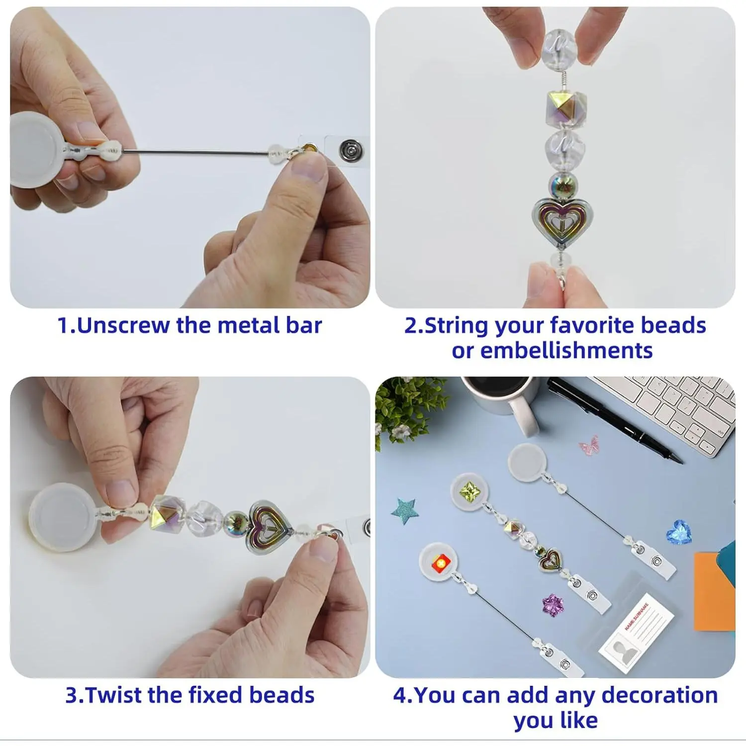 Easy Assembly: You only need to screw off the beads on the metal bar, choose your favorite beads to decorate each diy badge reel kit, then screw the fixed beads back to complete, you can also put some stickers, rubber cards, rhinestones on it to create a variety of exquisite styles, perfect for DIY enthusiasts to enjoy the satisfaction of creating hobby badge reels