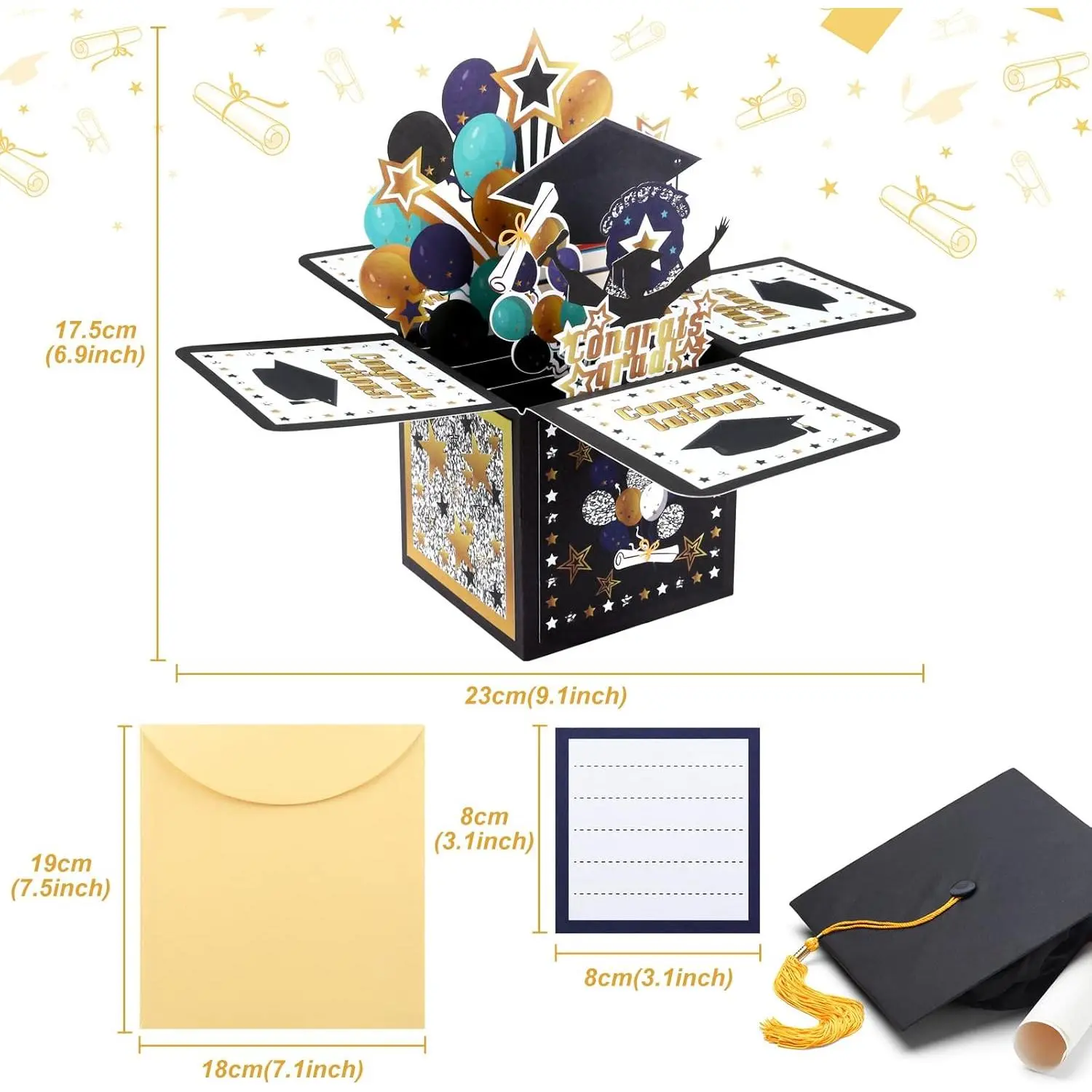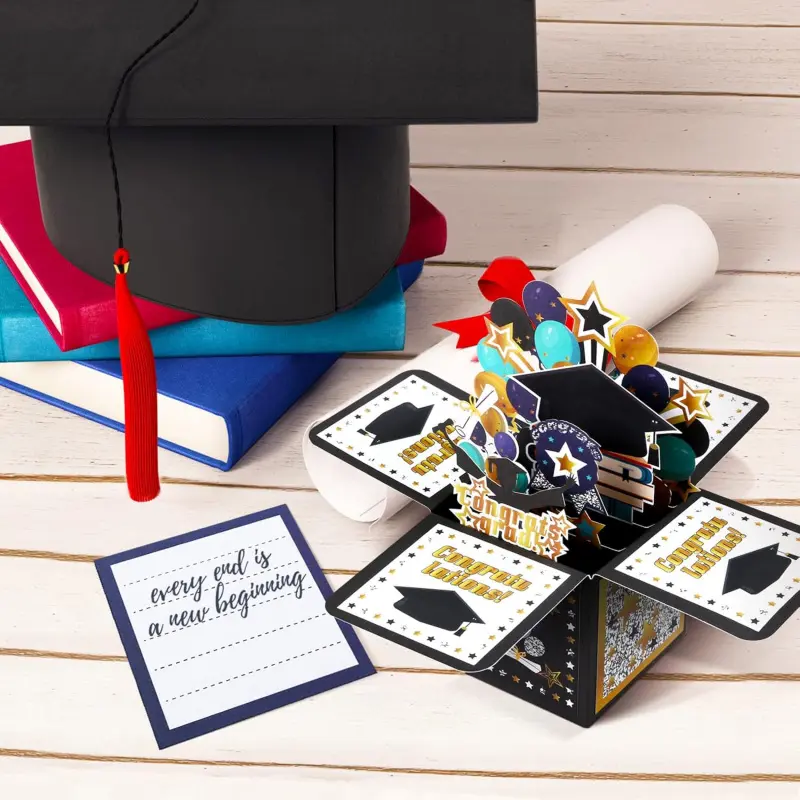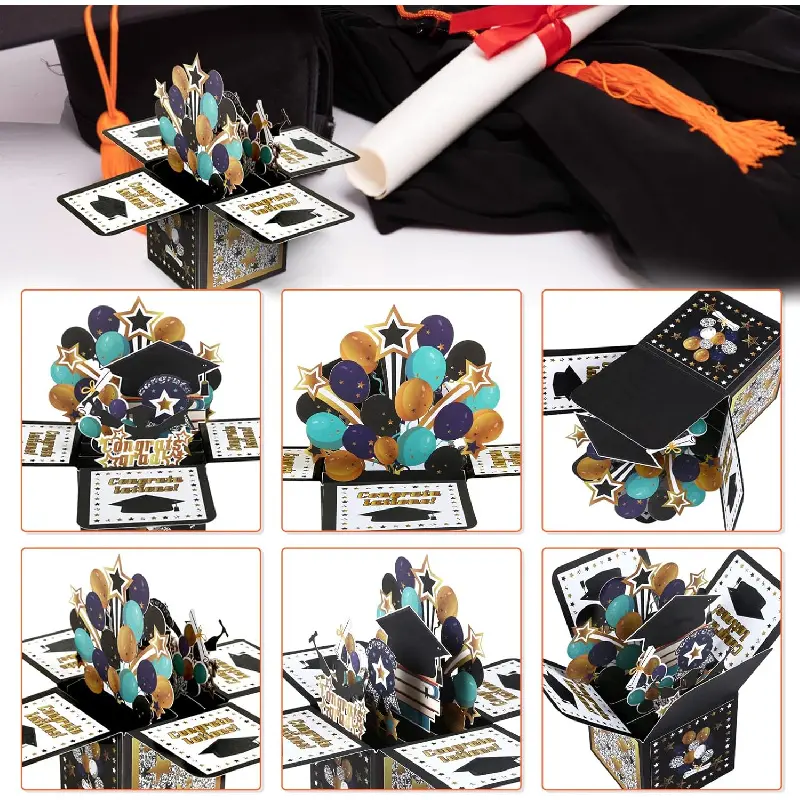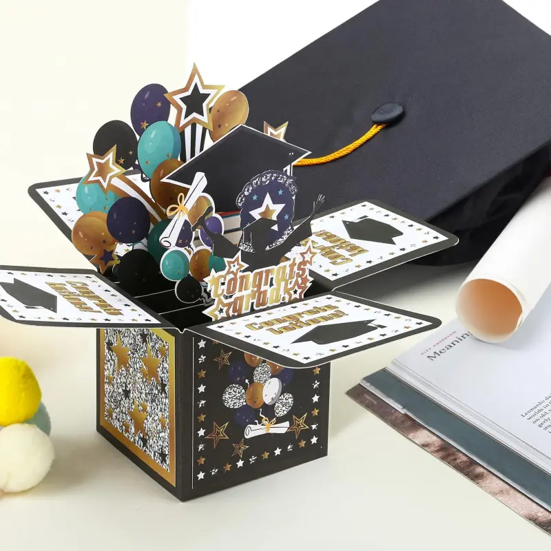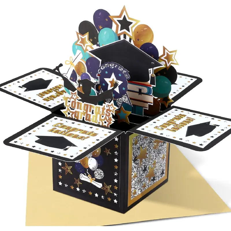 Features a suprise box to celebrate the big day inside the graduation greeting card when open it
