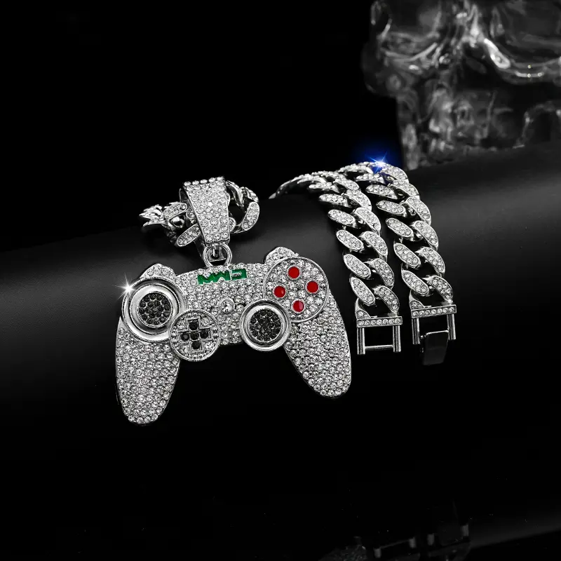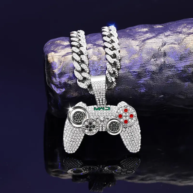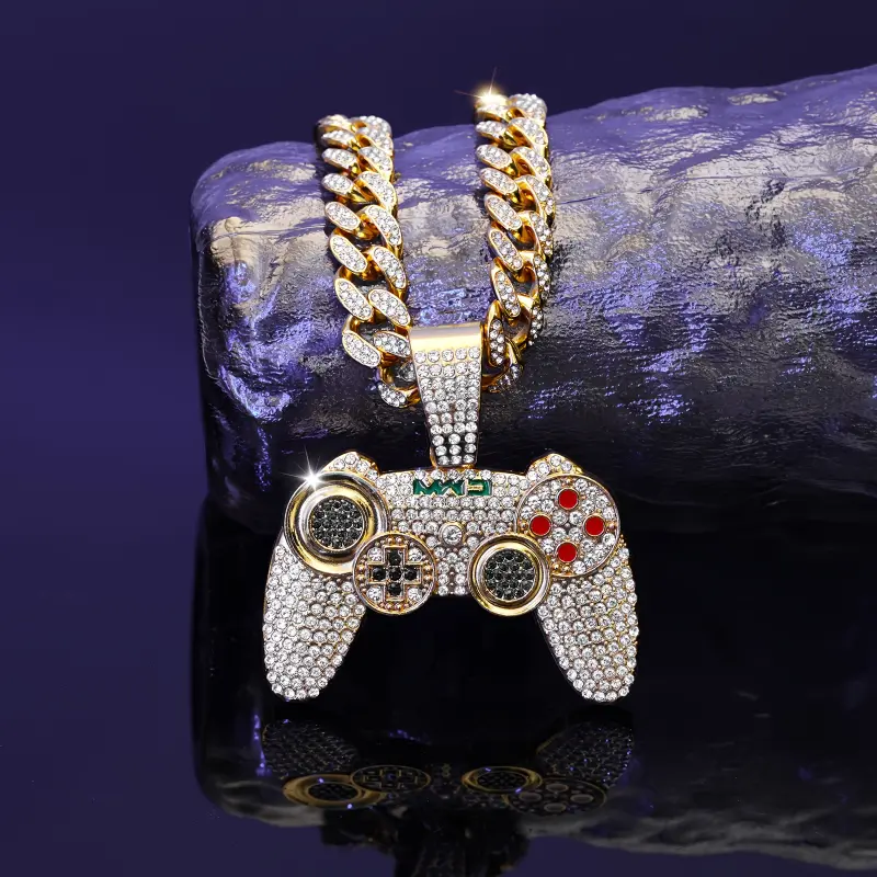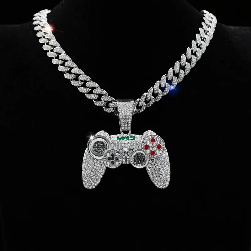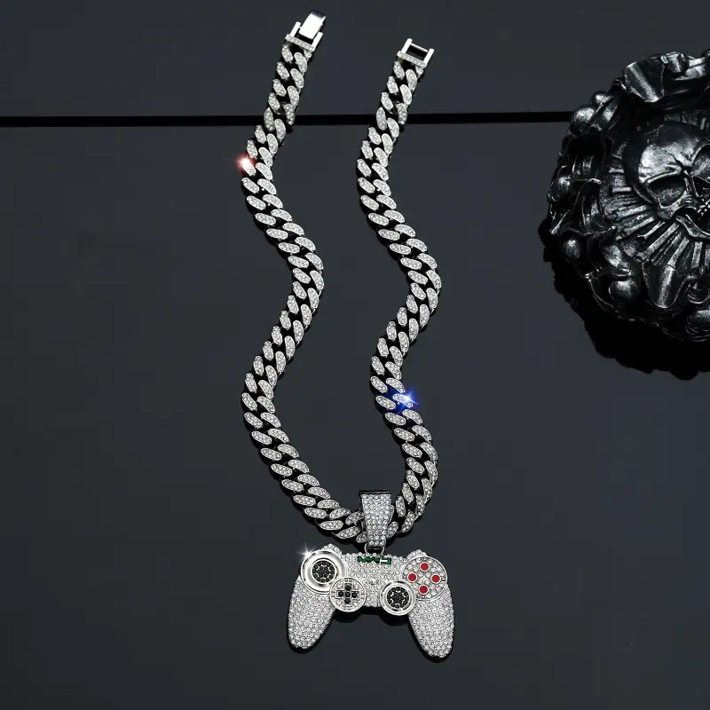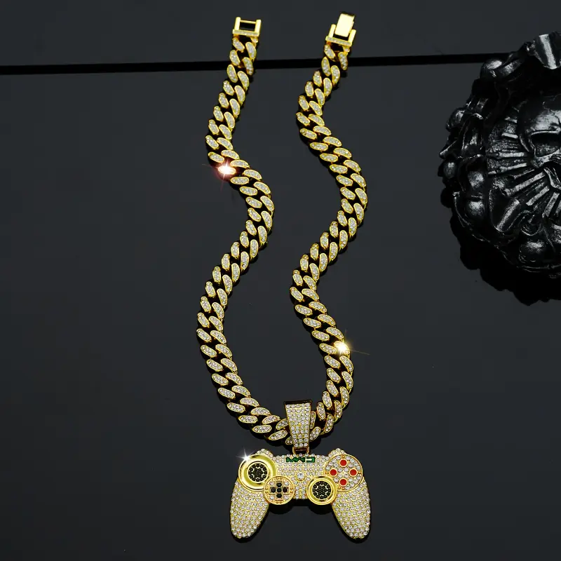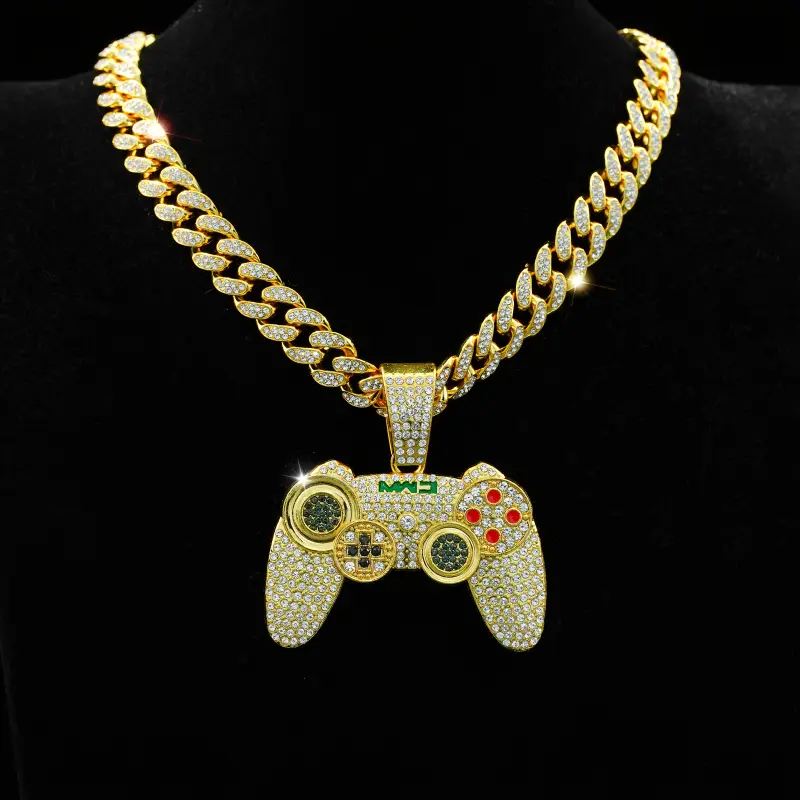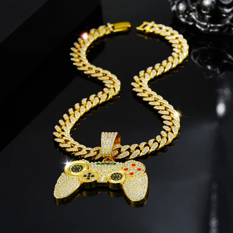 1pc Fashion Gold Tone Game Controller Pendant Necklace, Hip Hop Style Cuban Chain for Men, Suitable for Music Festivals, EDM, Parties and More