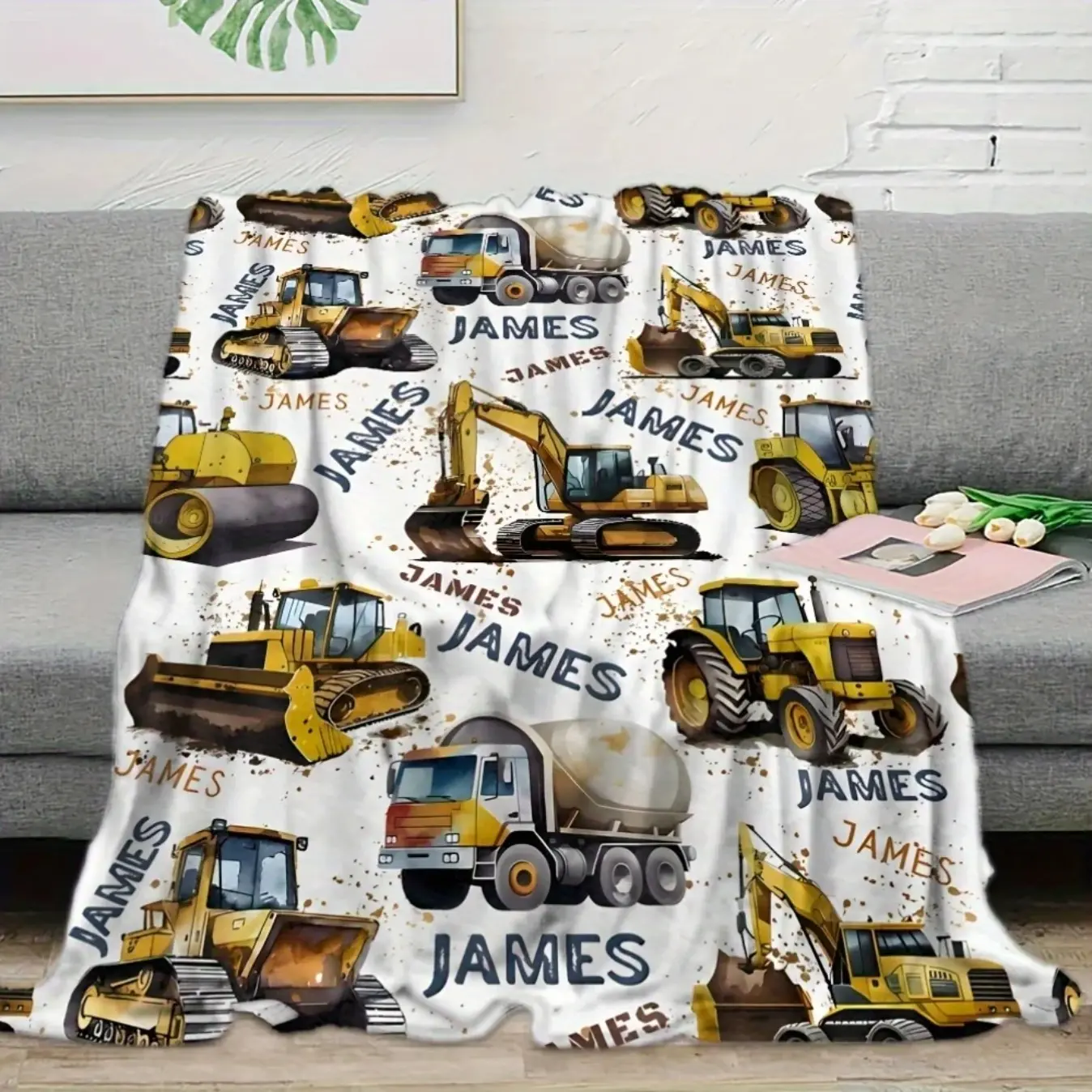 Cute Excavator Construction Truck Blanket Soft Polyester Throw Blanket Skyscraper Pattern Cozy Machine Washable Blanket for Bedroom Living Room Kids Gift