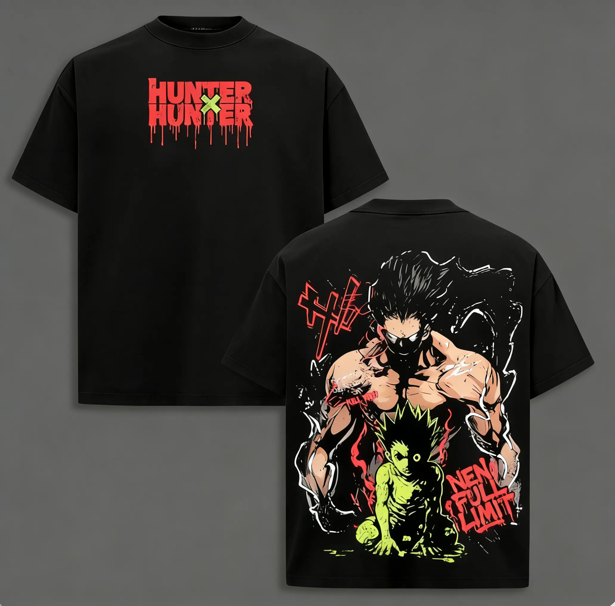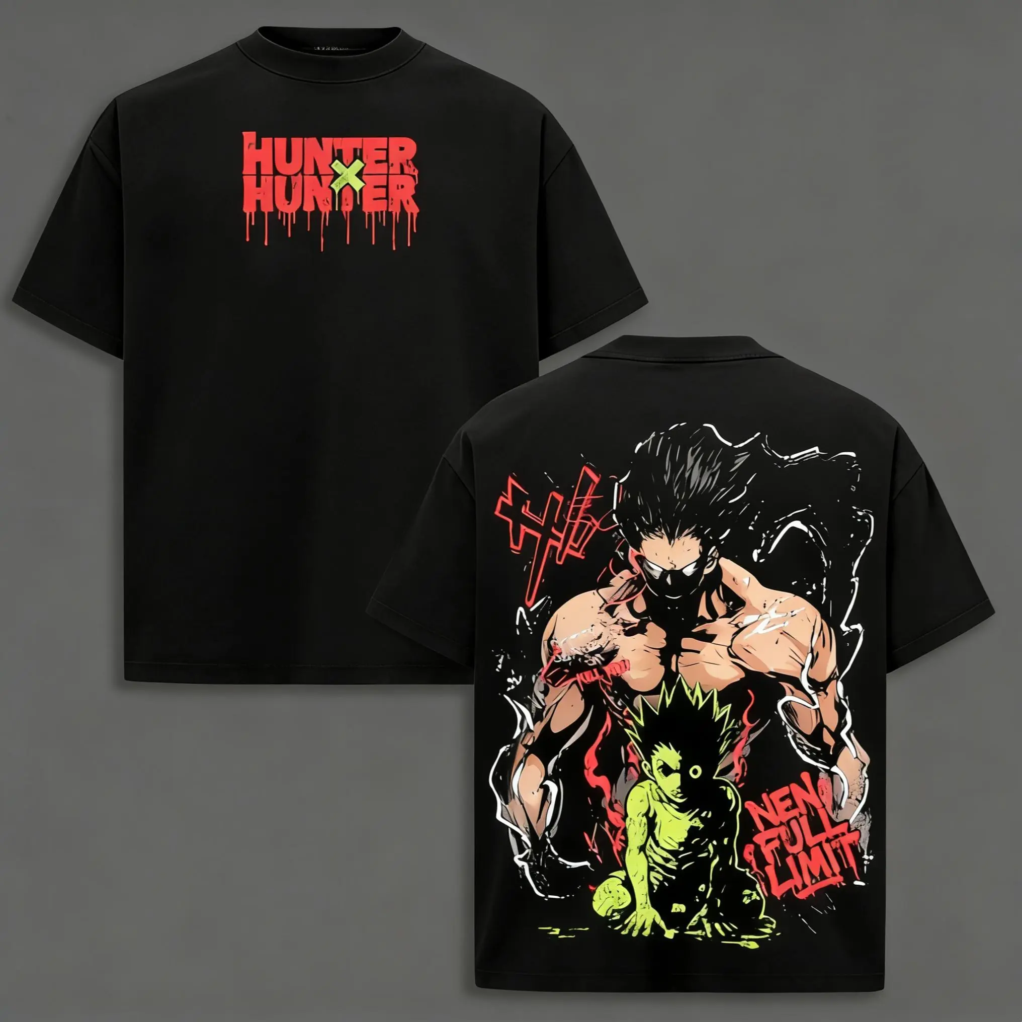 This t-shirt is a fun and trendy choice for anime fans. It's a perfect gift for those who love Hunter x Hunter. The graphic design adds a playful touch to your wardrobe. Enjoy the comfort and style of this acid-washed soft cotton shirt.