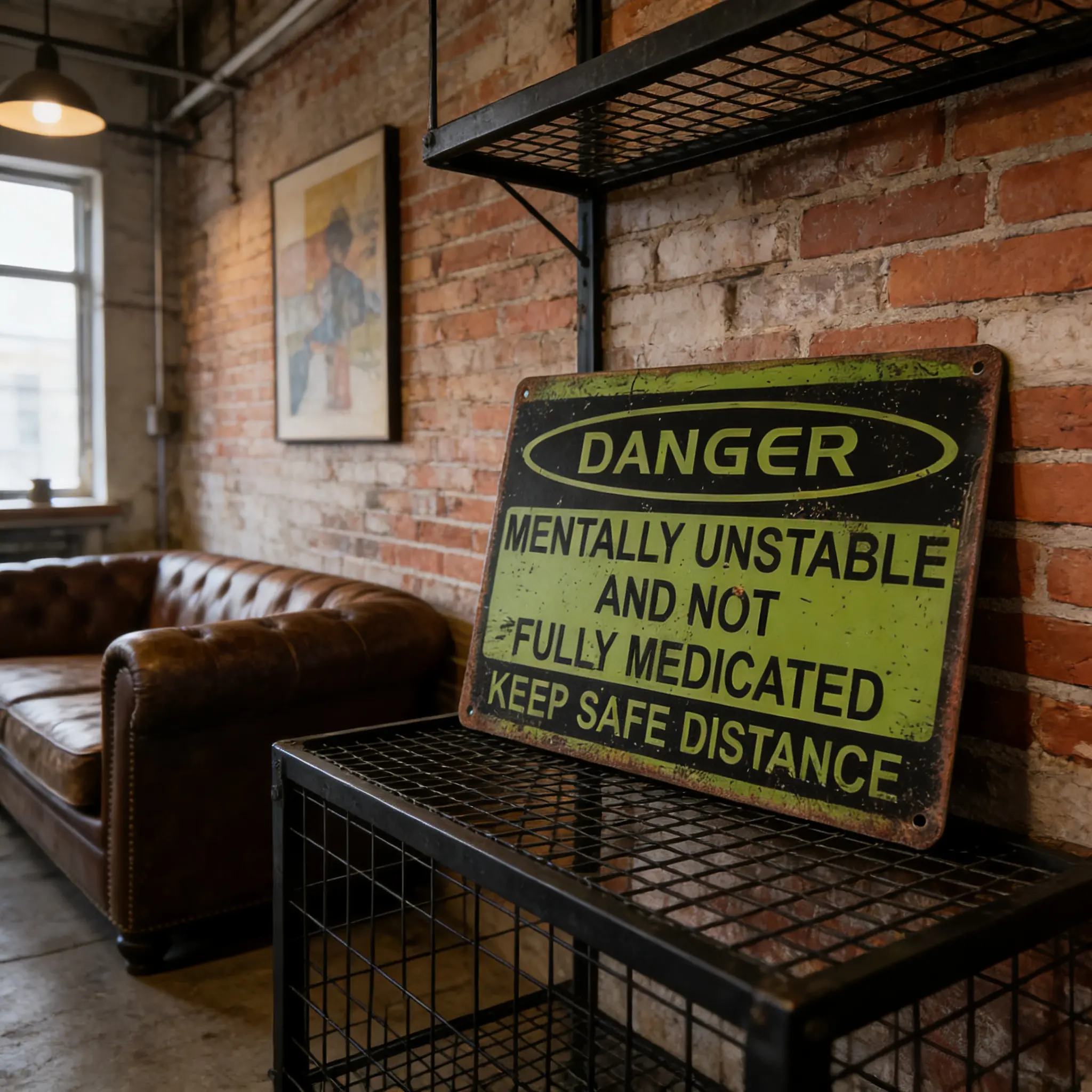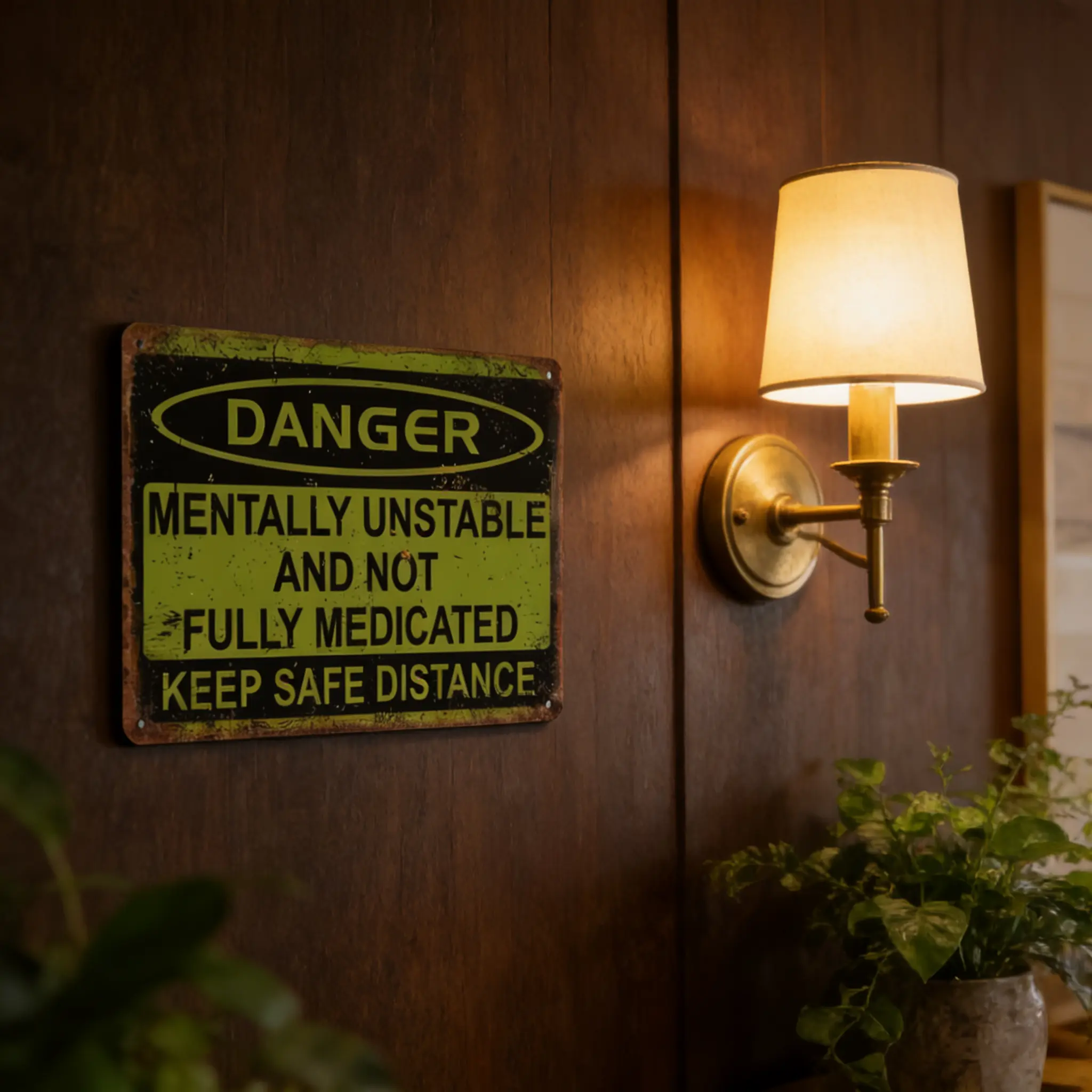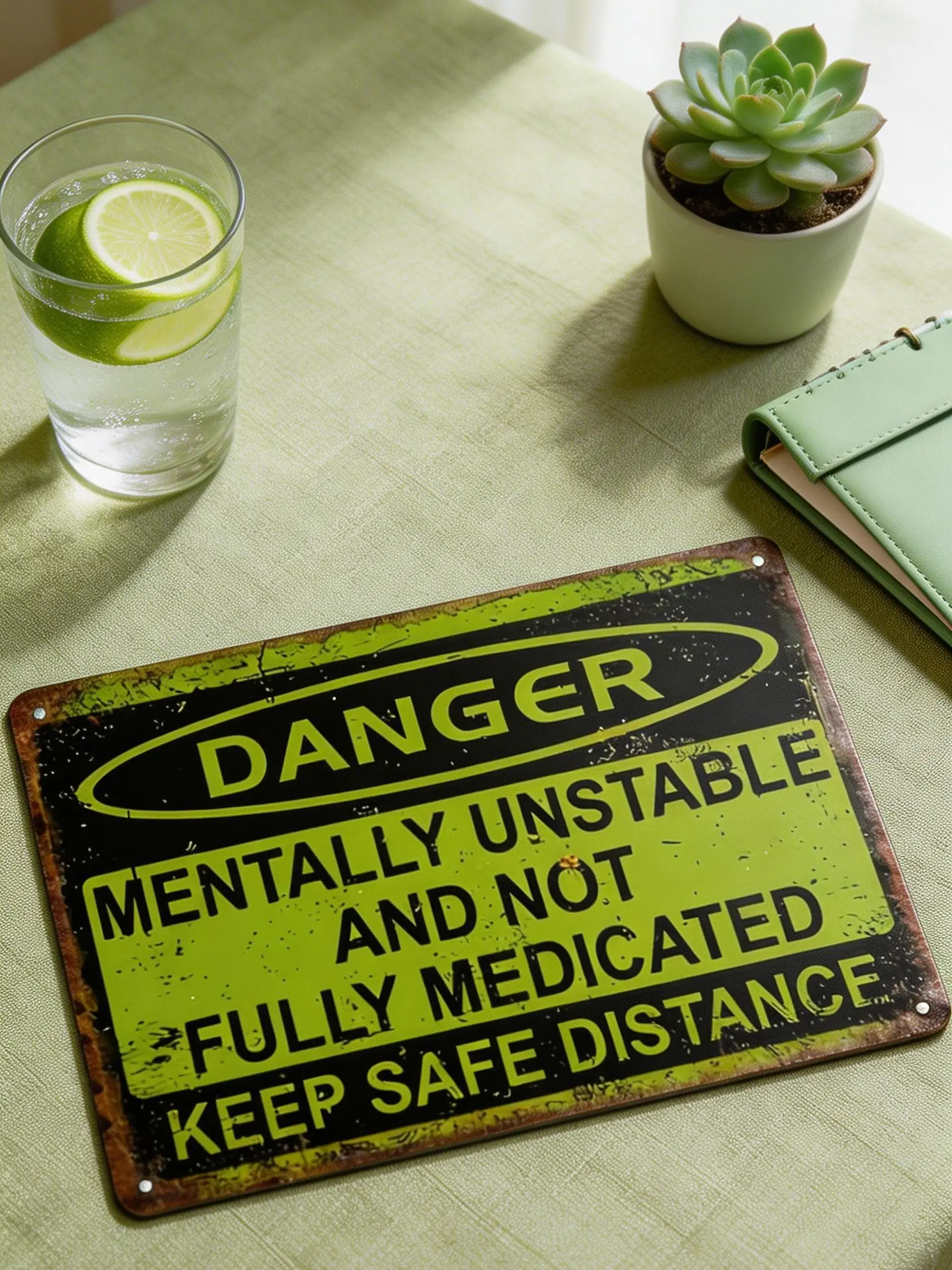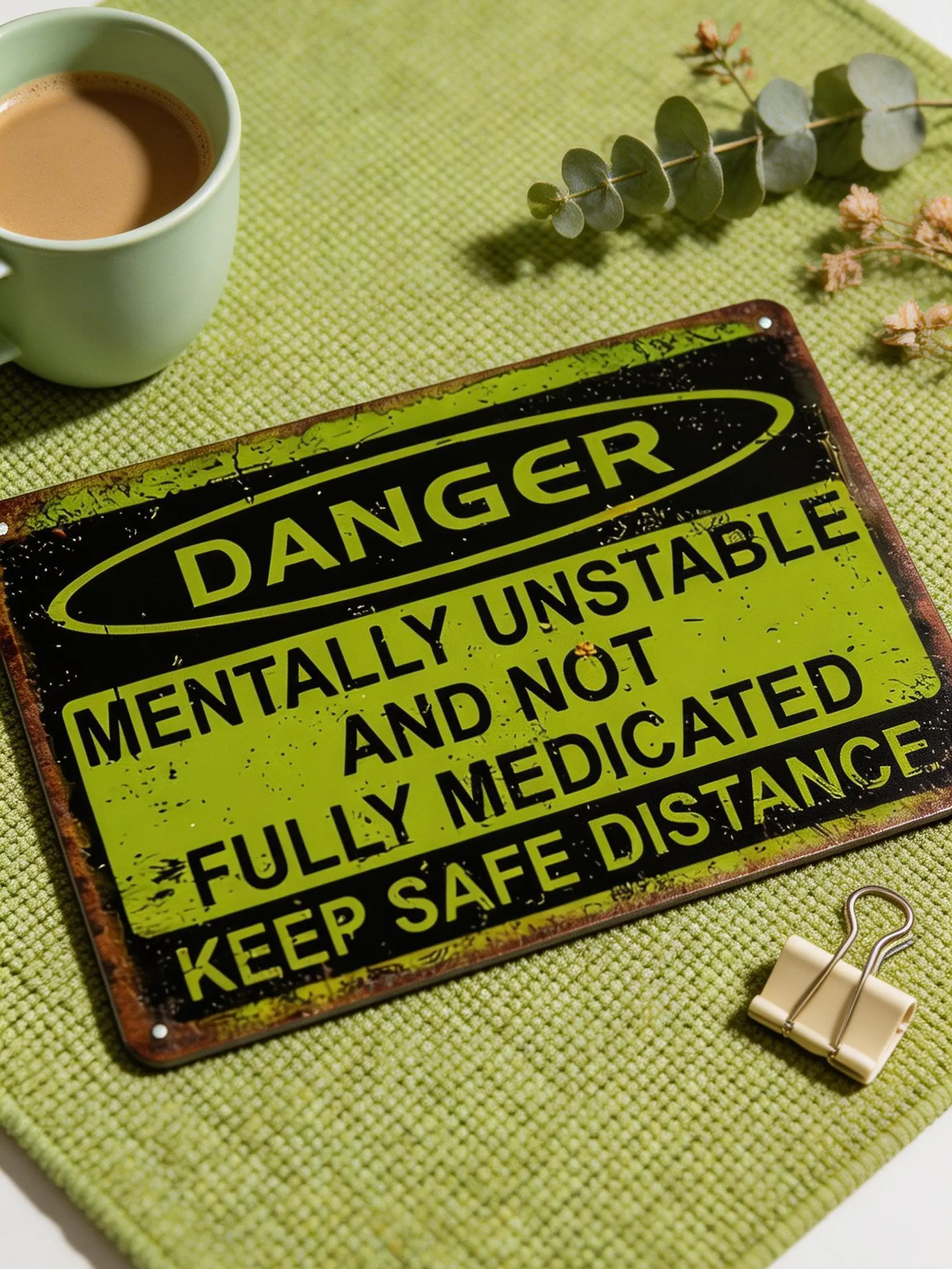 ✨ Funny "Mentally Unstable & Not Fully Medicated" Metal Sign ✨