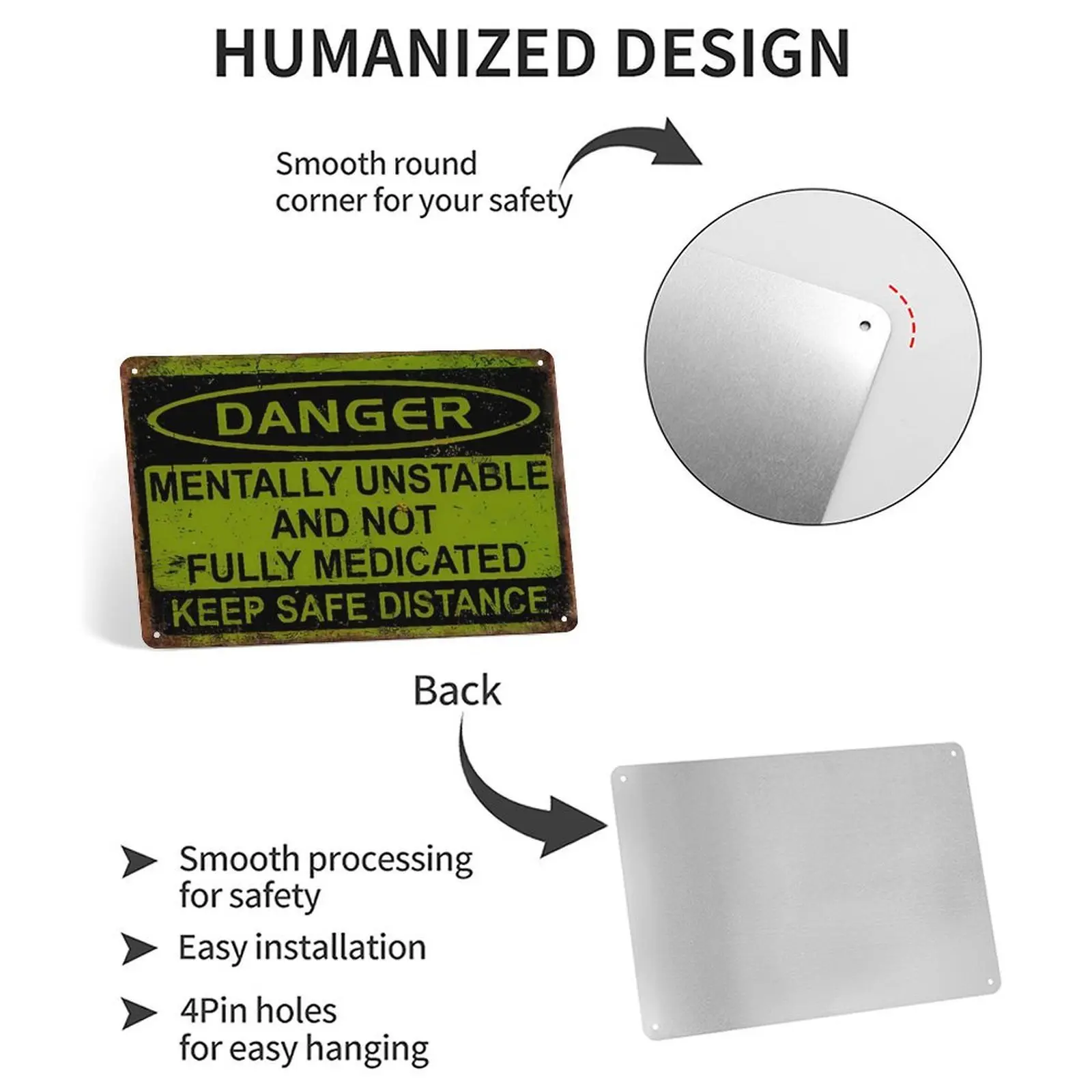Funny "Mentally Unstable & Not Fully Medicated" Metal Sign, 8"×12" (20×30cm) Retro Safety Style Wall Art, Ideal for Bedroom, Garage, Gift for FriendsFunny "Mentally Unstable & Not Fully Medicated" Metal Sign, 8"×12" (20×30cm) Retro Safety Style Wall Art, Ideal for Bedroom, Garage, Gift for Friends