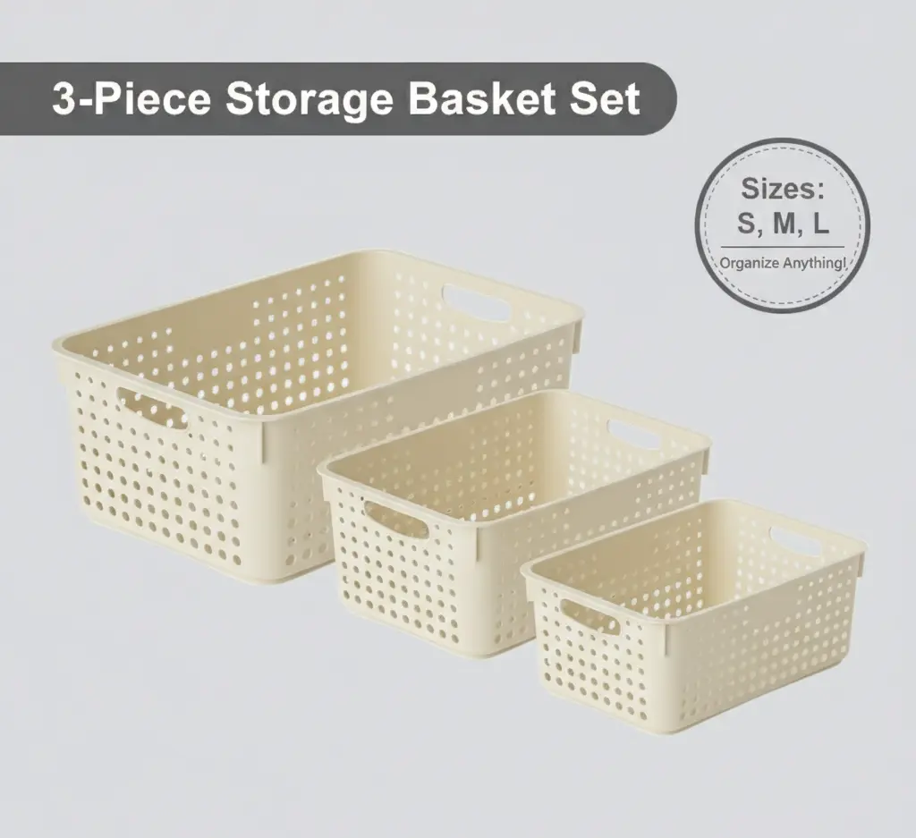 Perfectly Sized Trio: Includes Small, Medium, and Large baskets to fit everything from skincare to linen.