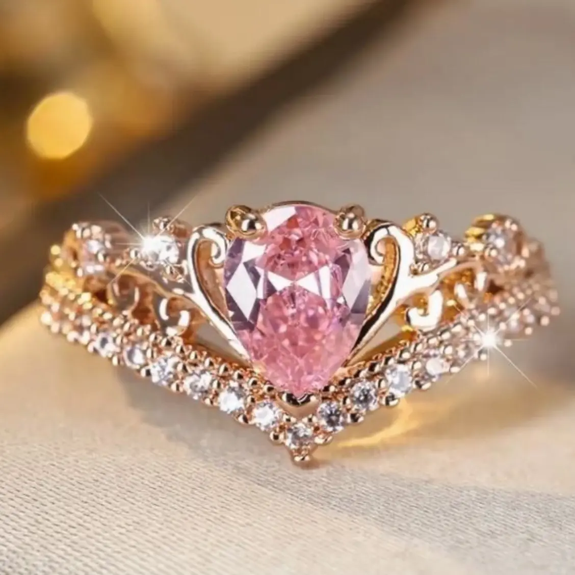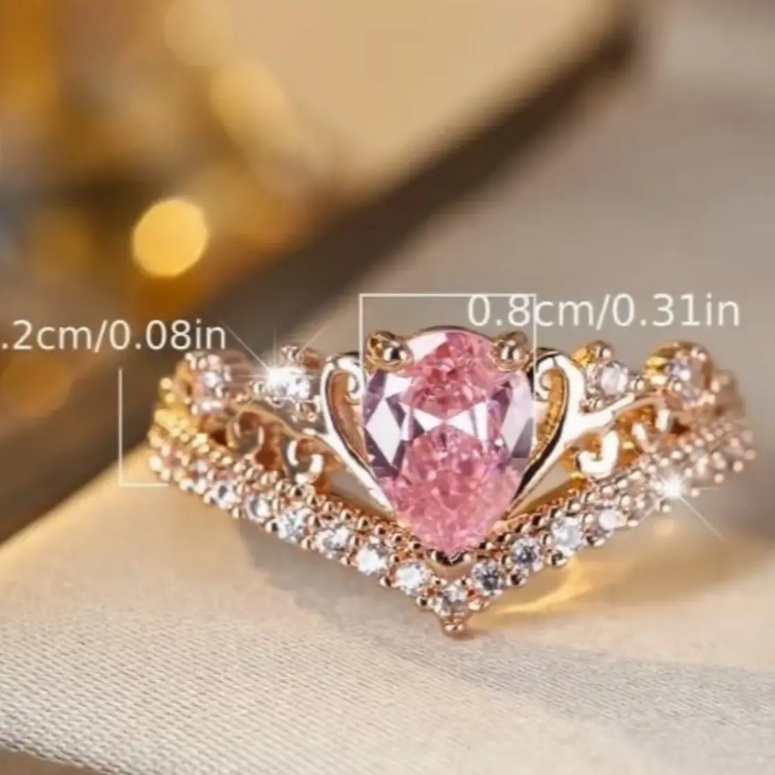 Elegant Pink Design: The ring features a beautiful pink stone that adds a touch of femininity and charm to your look.