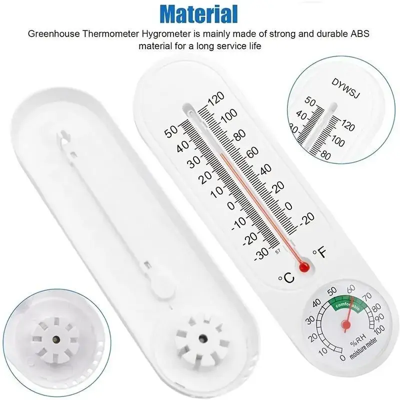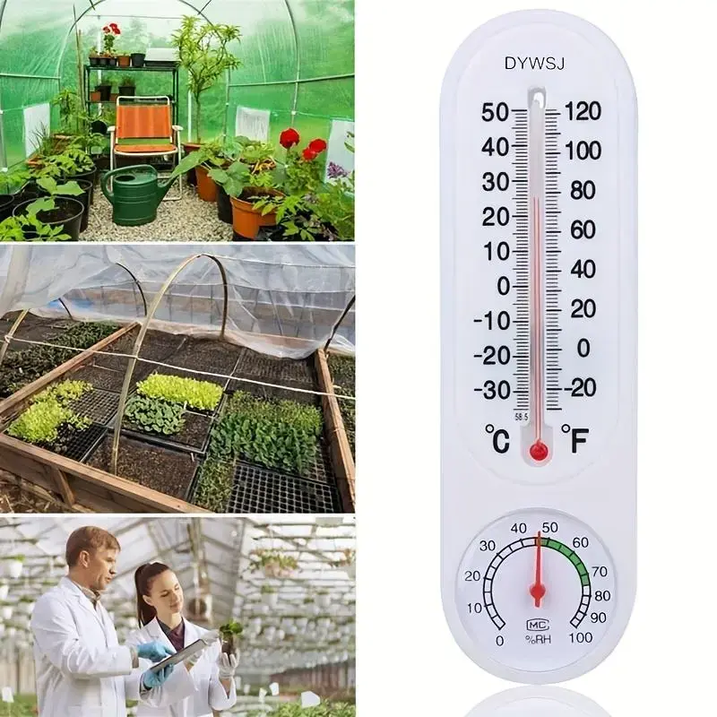 Monitor temperature and humidity with this versatile gauge. Perfect for patios, fields, cellars, gardens, greenhouses, and closets. It measures in both Celsius and Fahrenheit (℃/℉). Ideal for tracking environmental conditions in various settings.
