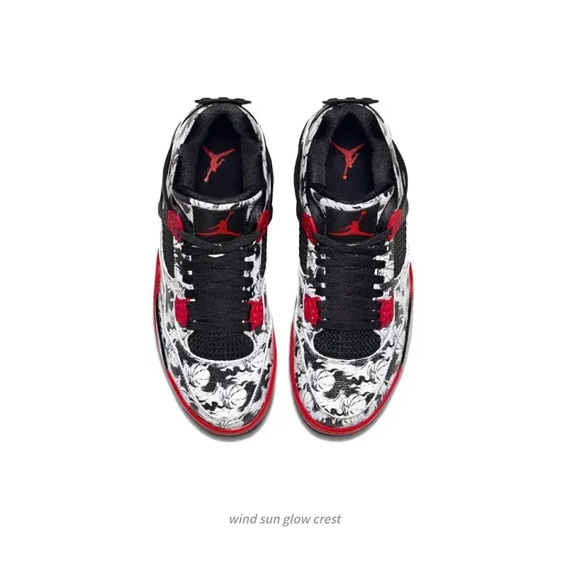 ·Design Highlights:Monochrome graffiti patternRed accents for a pop of colorHigh-top style for added support