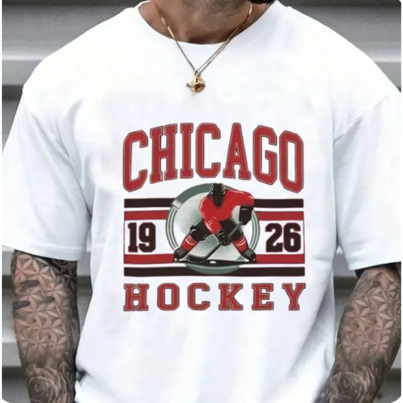 Vintage Hockey Graphic Tshirt - WHITE Color Sports Hockey City Pullovers Retro Sports Tshirt Casual Hockey Game Top - TCC