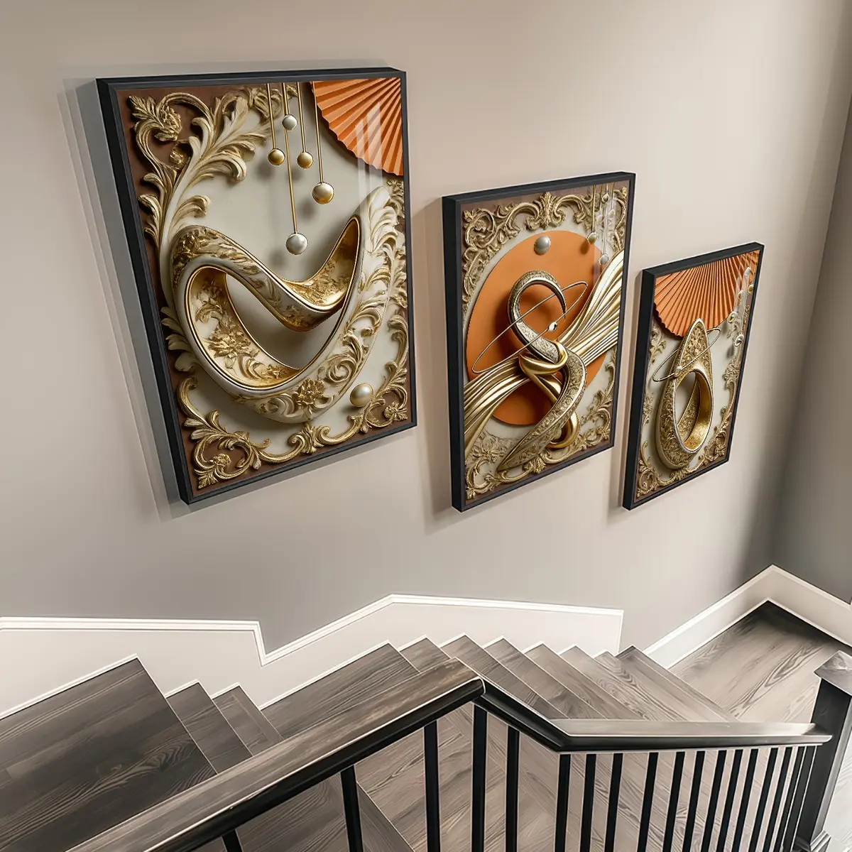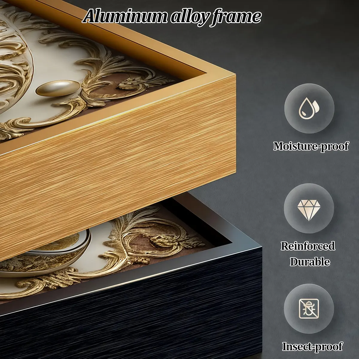3 Counts Aluminum Alloy Framed Painting, Golden Abstract Flowers Artwork, Home Decoration For Living Room, Bedroom, Office, Restaurant, Hallway Wall Decor, Odorless Print Artwork, Luxury Perfect Gift For Friends And Family