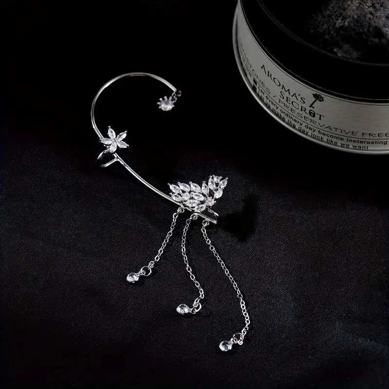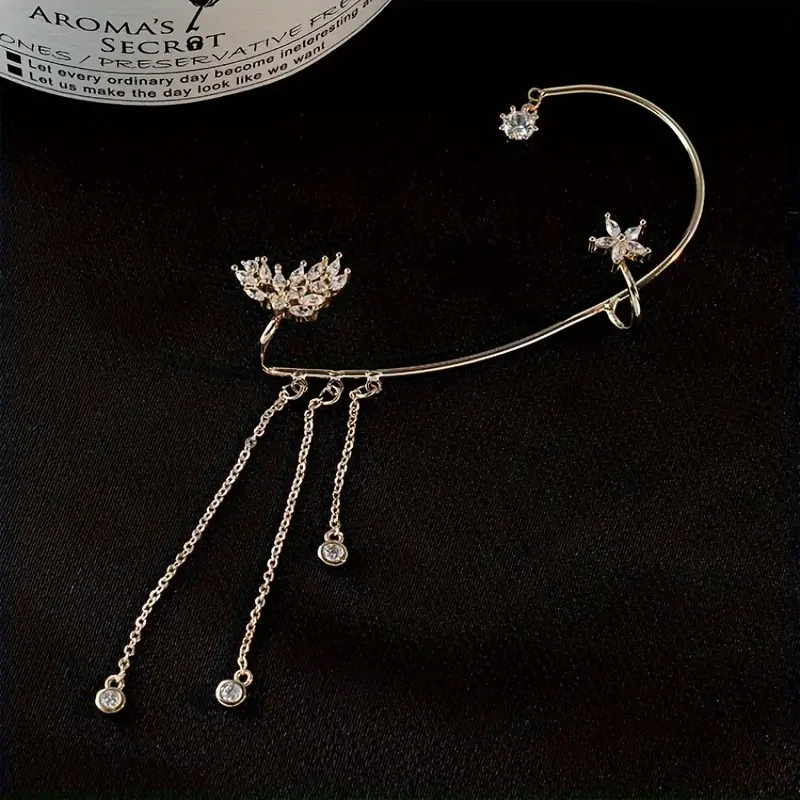 [Trendy Zirconia Tassel Ear Cuff] Shiny Butterfly Ear Cuff Earring Trendy Zirconia Inlaid Tassel Ear Wrap Earrings Elegant Ear Ornaments Jewelry Accessories for Women Tassel Ear Hooks Without Ear Holes
