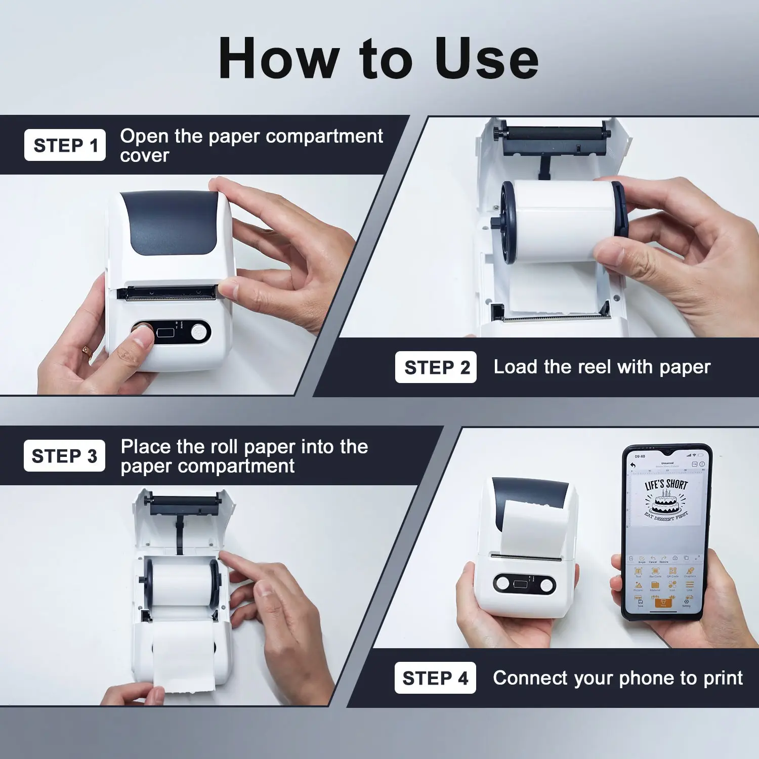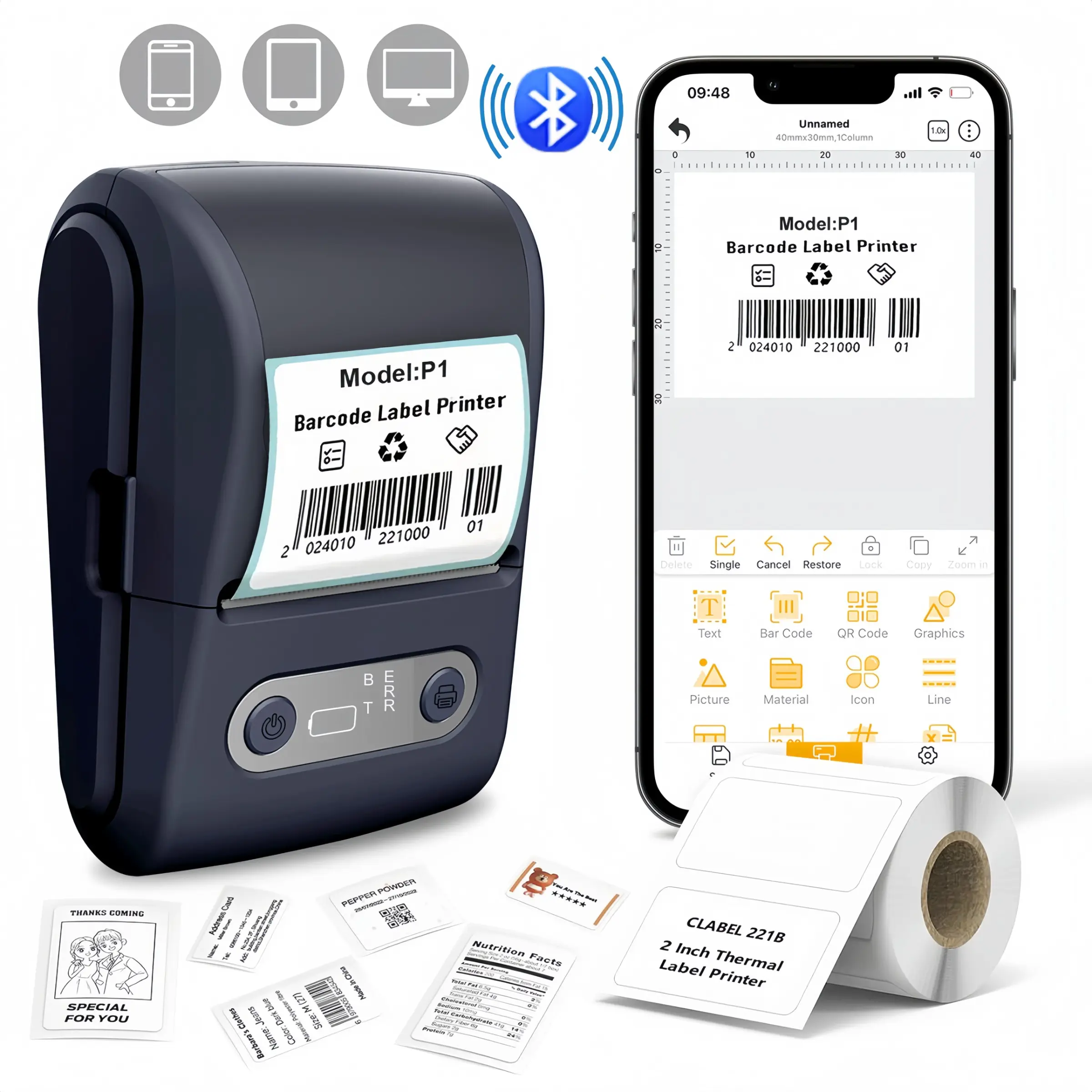 【Wireless Connectivity】: This portable thermal label printer supports wireless connectivity via Bluetooth-compatible, ensuring easy pairing with smartphones.