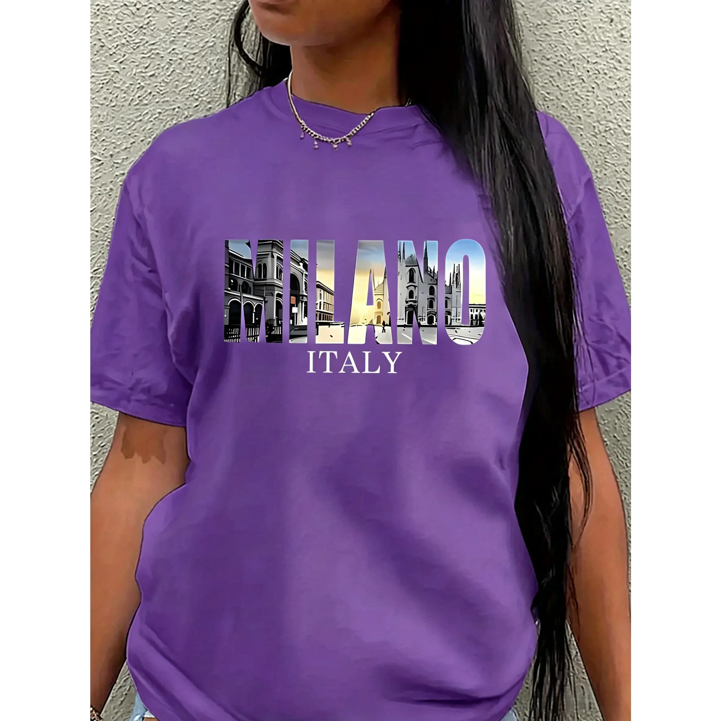 5. 100% cotton, Milanese Italian geometric print women's casual sports T-shirt, round neck, short sleeves, stretchy, mature style, suitable for spring, summer, and autumn, an ideal Christmas gift