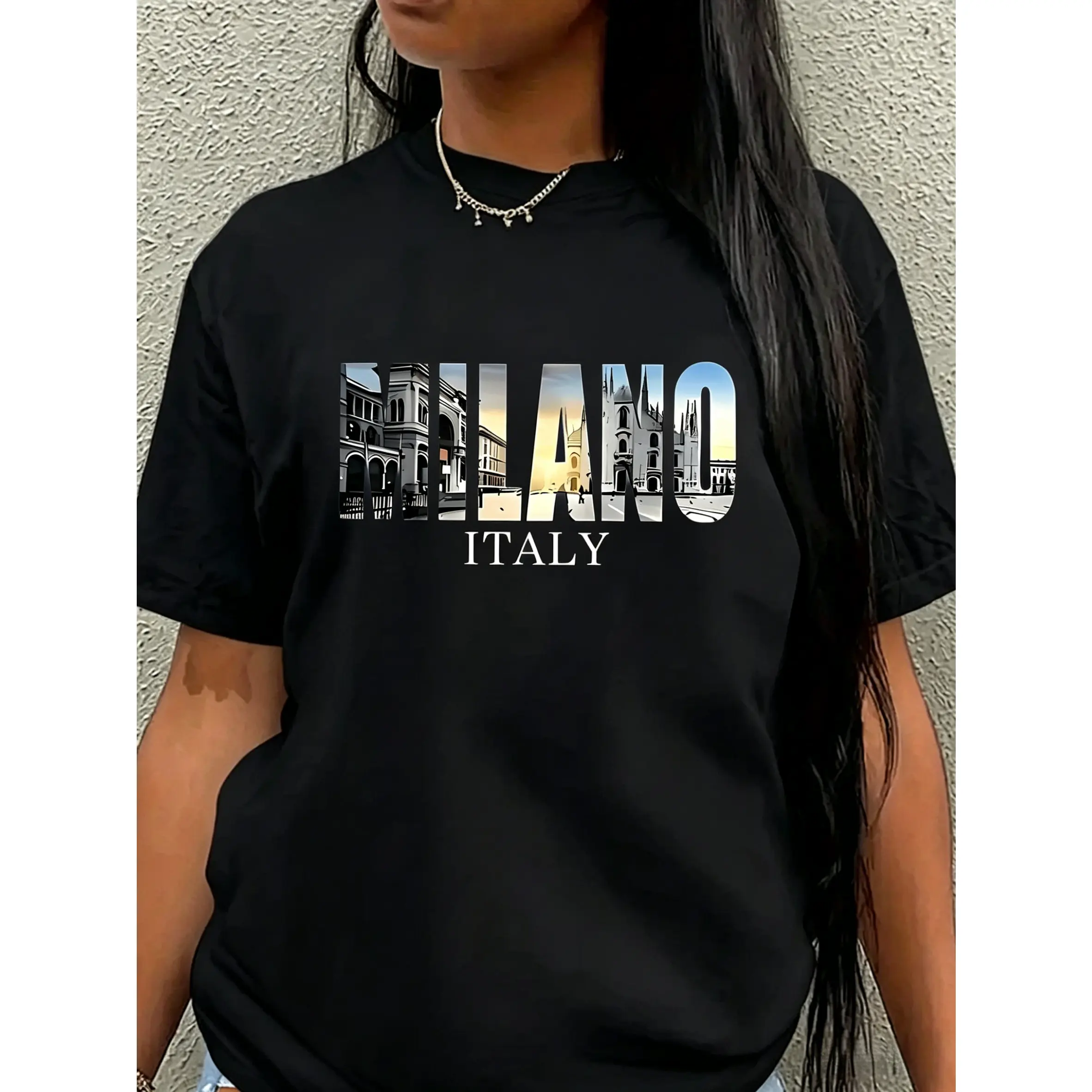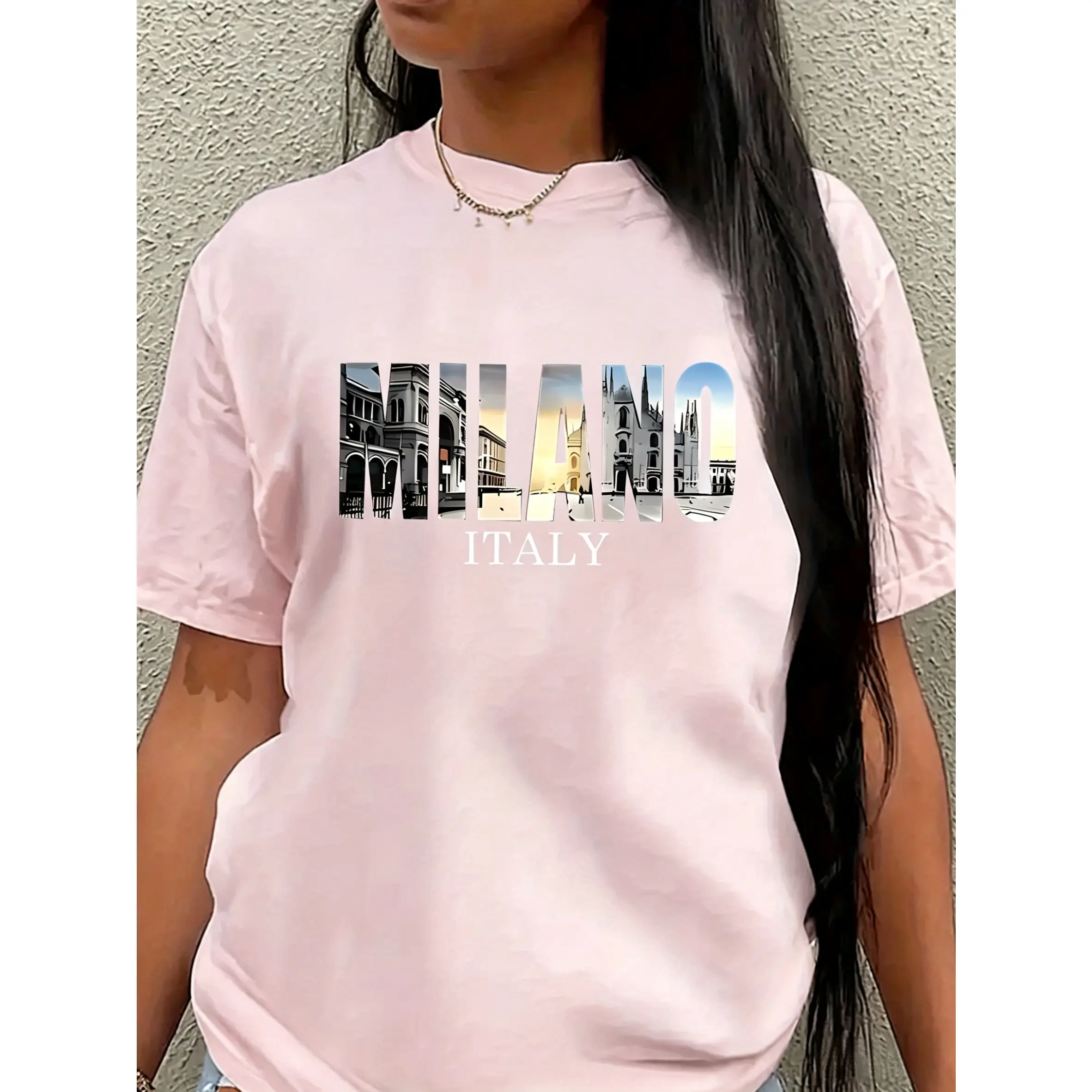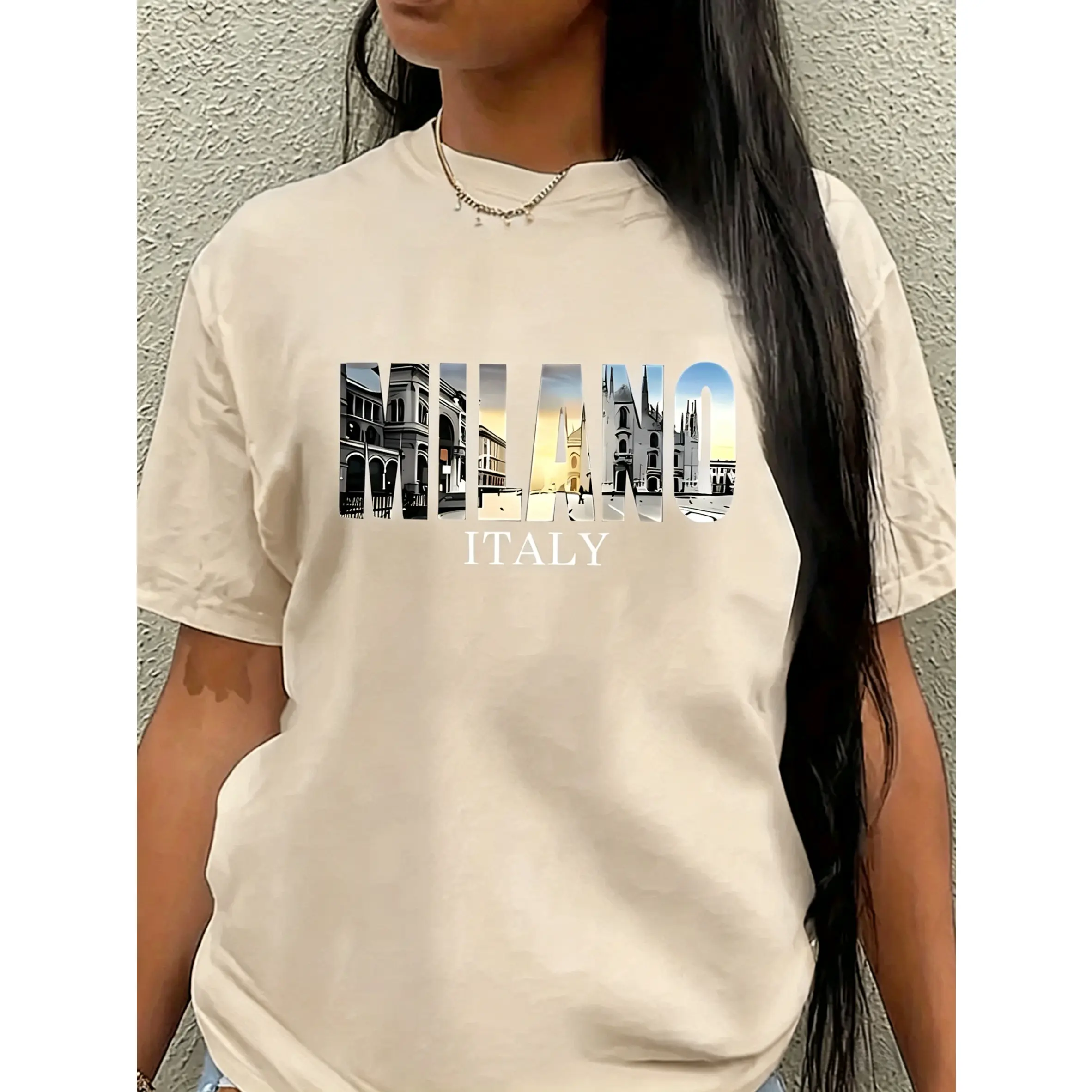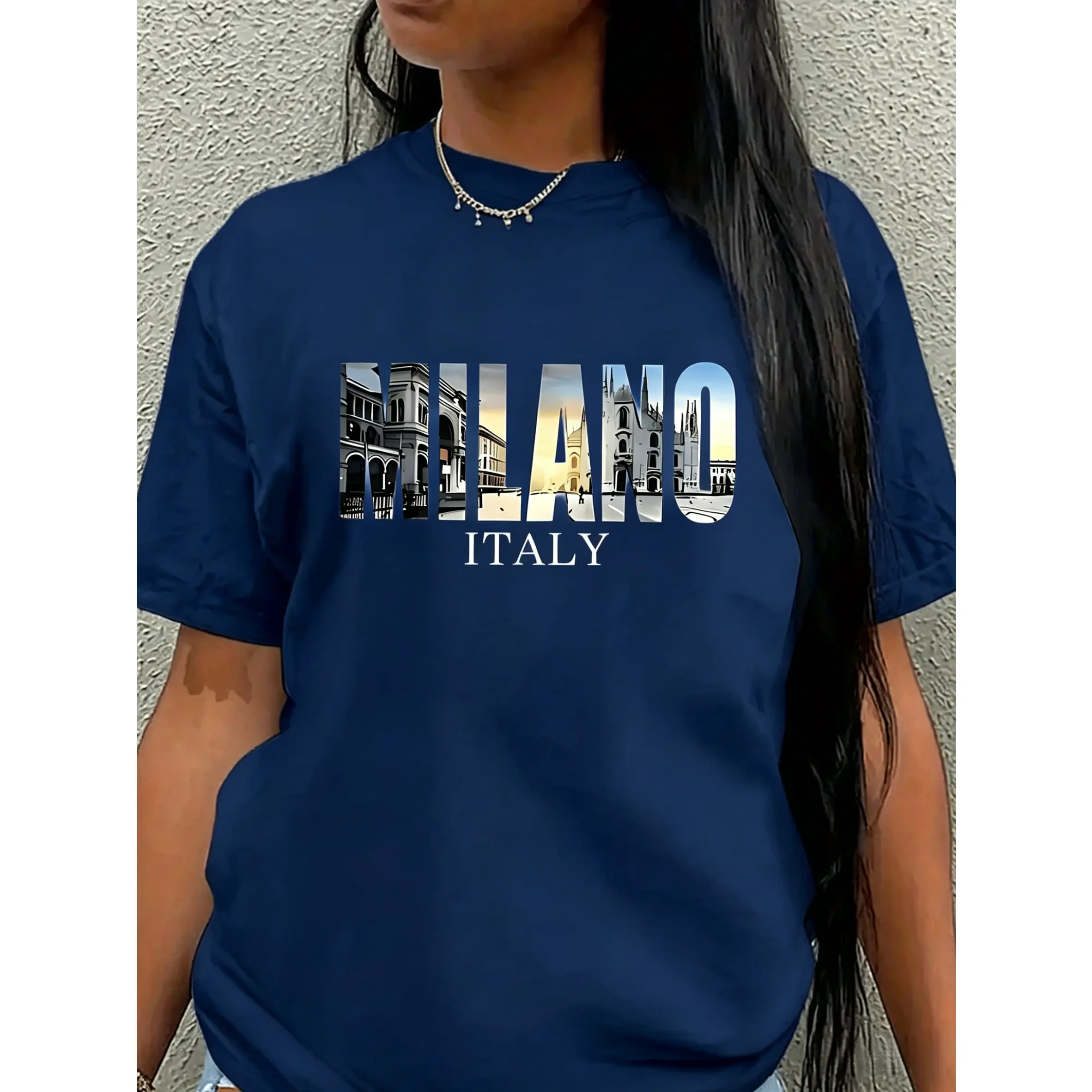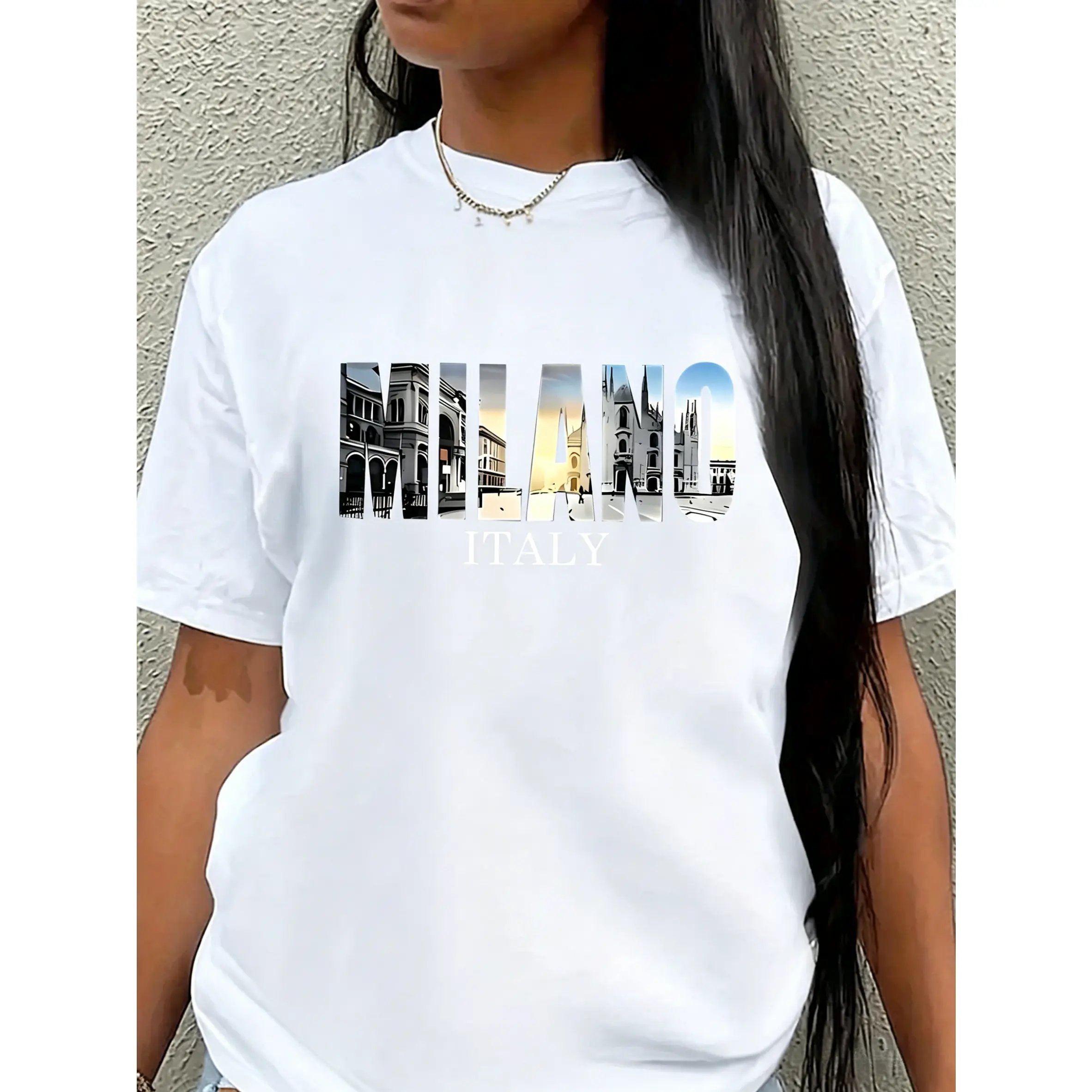 100% cotton, Milanese Italian geometric print women's casual sports T-shirt, round neck, short sleeves, stretchy, mature style, suitable for spring, summer, and autumn, an ideal Christmas gift
