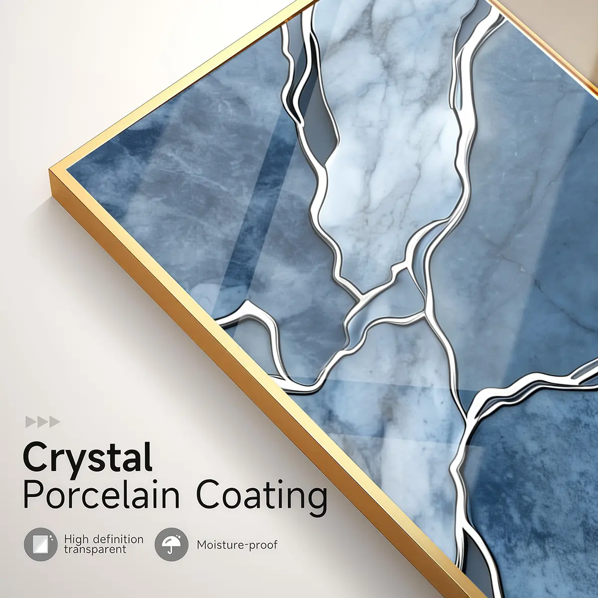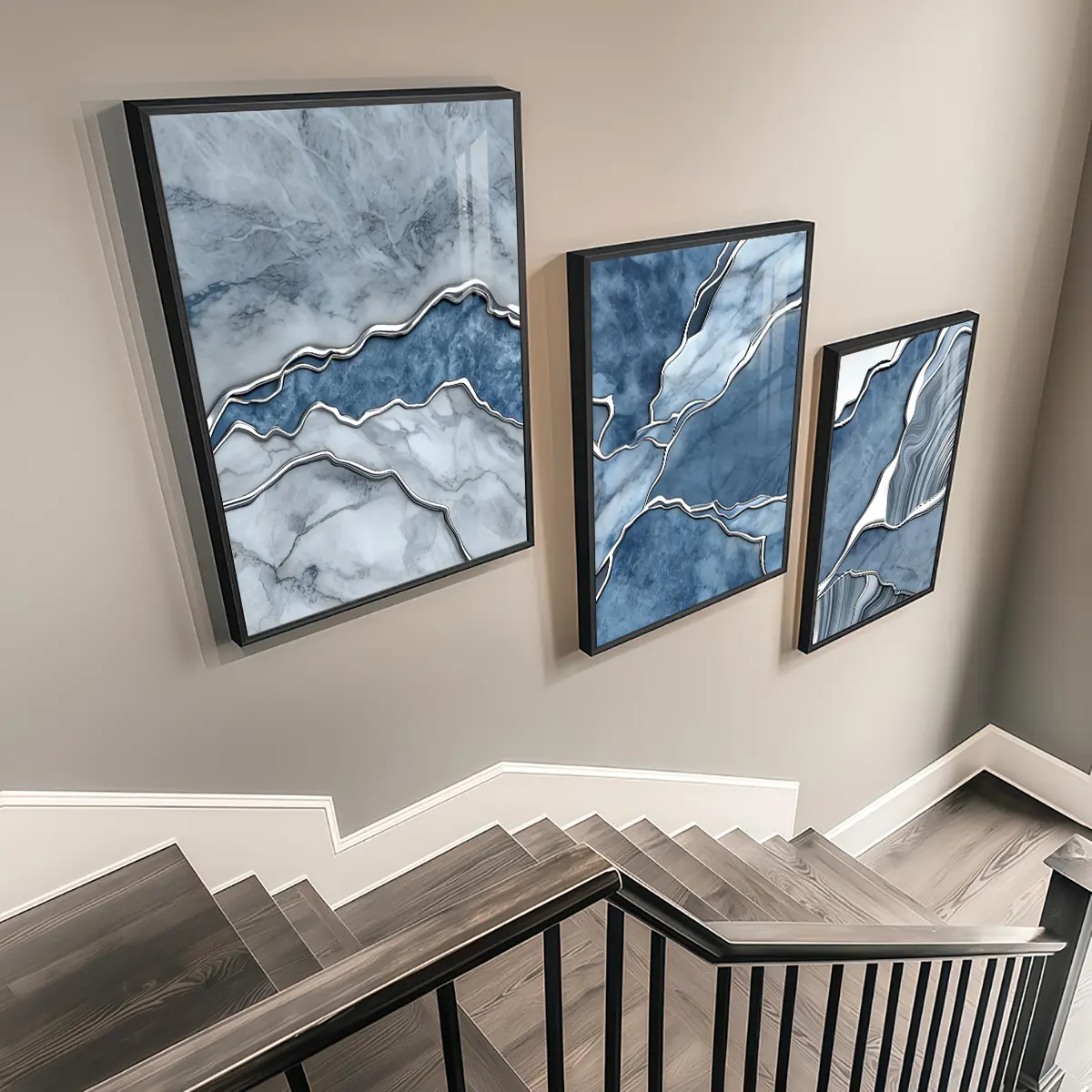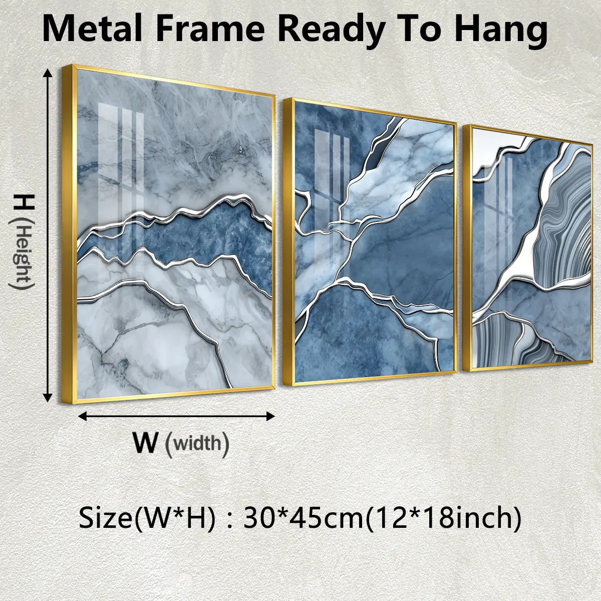 3 Counts Aluminum Alloy Framed Painting, Abstract Blue Marble Texture Art Pictures, Home Decoration For Living Room, Bedroom, Office, Restaurant, Hallway Wall Decor, Odorless Print Artwork, Luxury Perfect Gift For Friends And Family