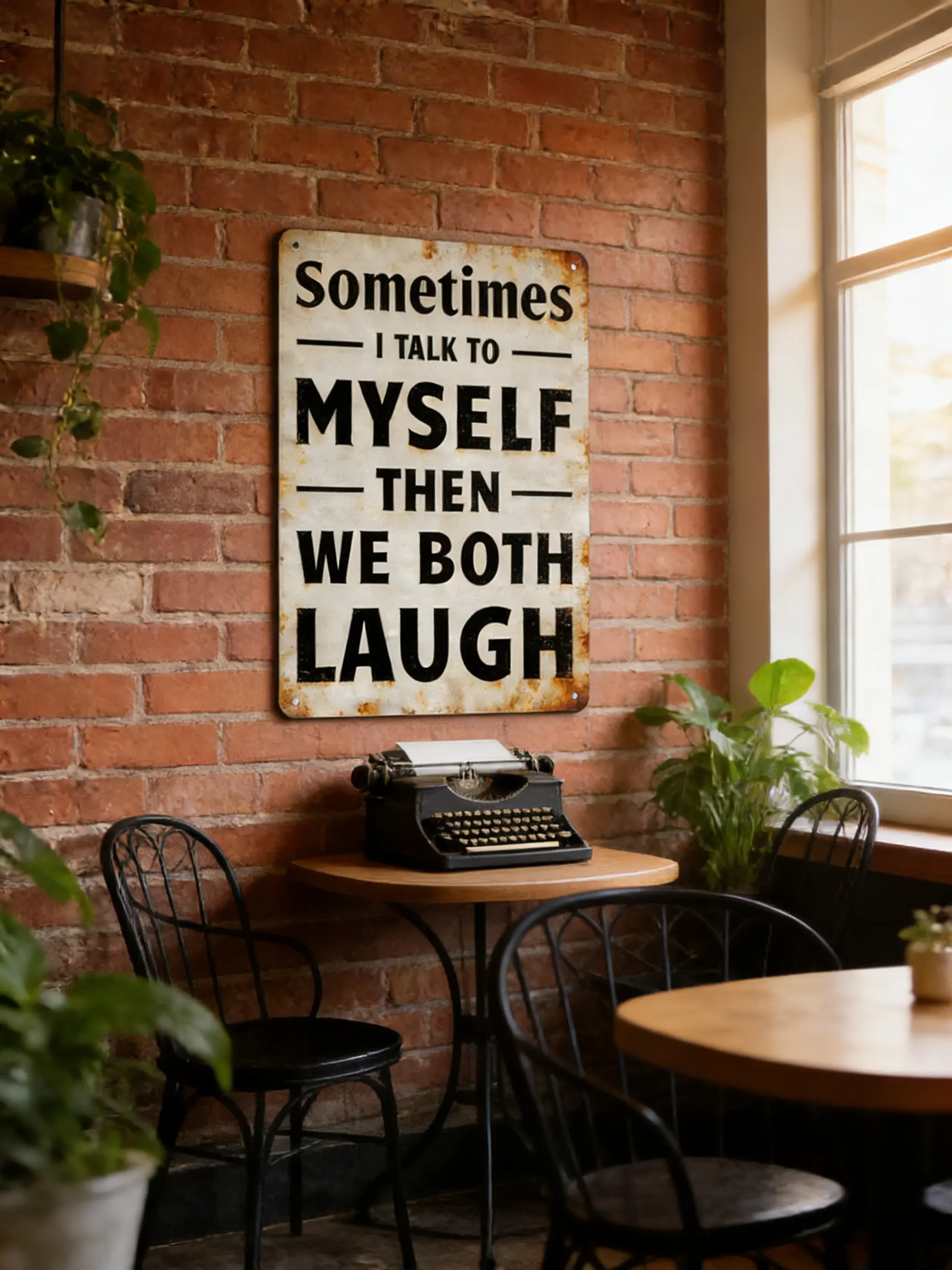 5. Sometimes I Talk To Myself Then We Both Laugh Vintage Metal Sign, 8x12 Inch (20×30cm) Funny Rustic Wall Decor for Home, Office, Cafe, Humorous Quote Poster