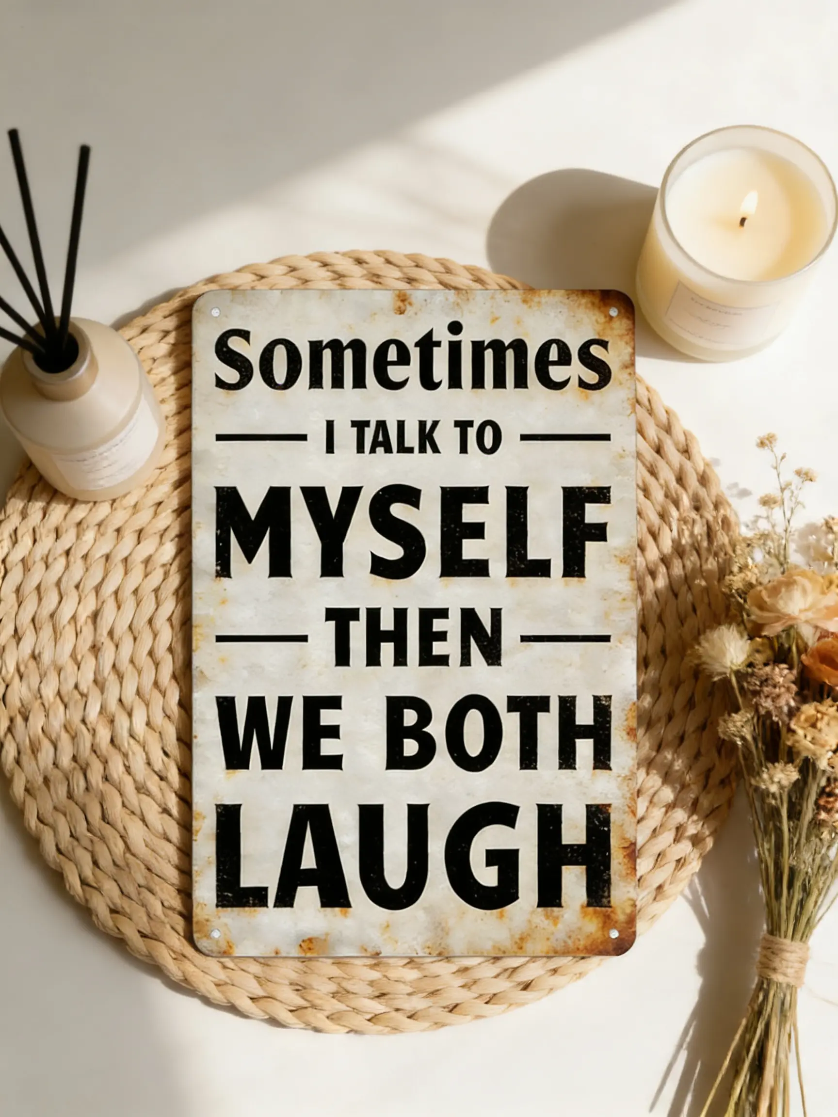 ✨ Sometimes I Talk To Myself Then We Both Laugh – This 8x12 Inch (20×30cm) sign adds a playful vibe to any space. Perfect for home, office, or cafe, it features a humorous quote that brings smiles. The rustic design complements various decors.