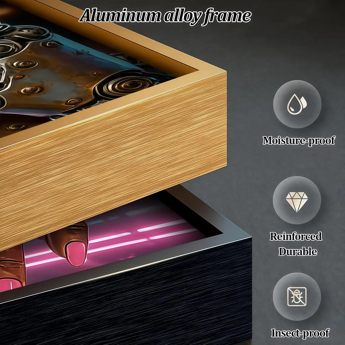 3 Counts Aluminum Alloy Framed Painting, Abstract Wood Texture And Golden Spark Art Pictures, Home Decoration For Living Room, Bedroom, Office, Restaurant, Hallway Wall Decor, Odorless Print Artwork, Luxury Perfect Gift For Friends And Family