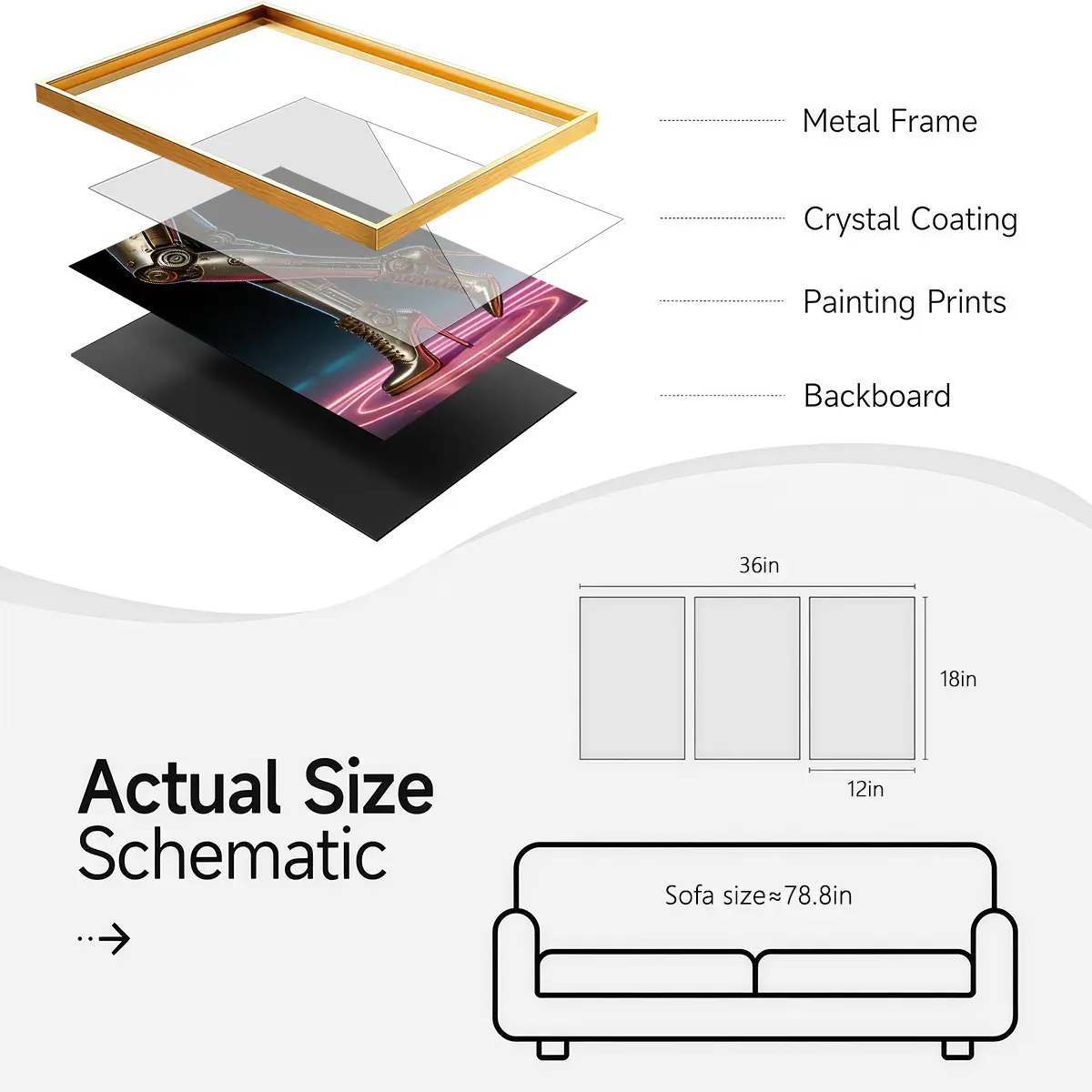 3 Counts Aluminum Alloy Framed Painting, Futuristic Cyberpunk Robot Art Pictures, Home Decoration For Living Room, Bedroom, Office, Restaurant, Hallway Wall Decor, Odorless Print Artwork, Luxury Perfect Gift For Friends And Family