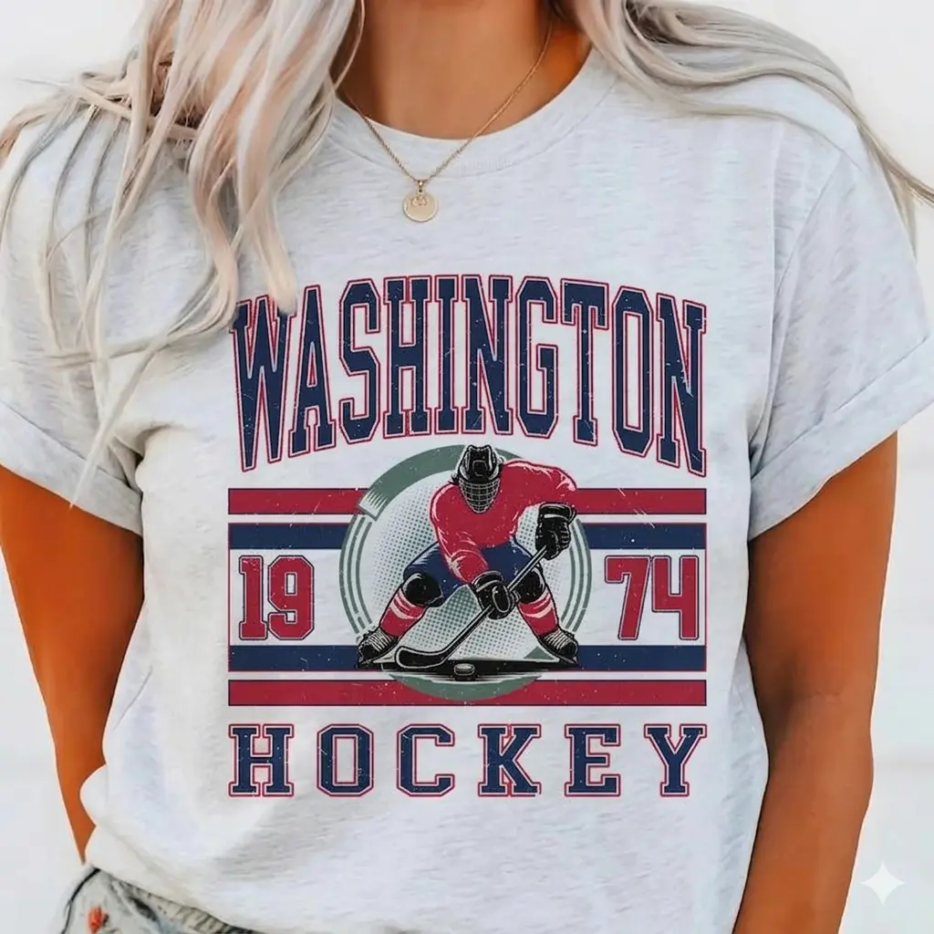 5. Vintage Hockey Graphic T shirt - Ash Grey Color Sports Hockey City Pullovers Retro Sports T shirt Casual Hockey Game Top - RO