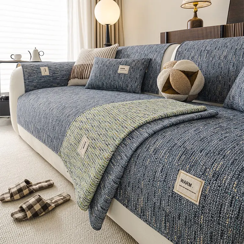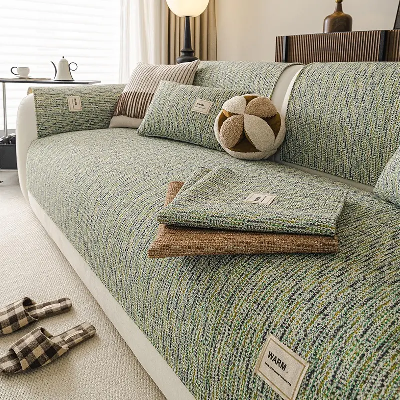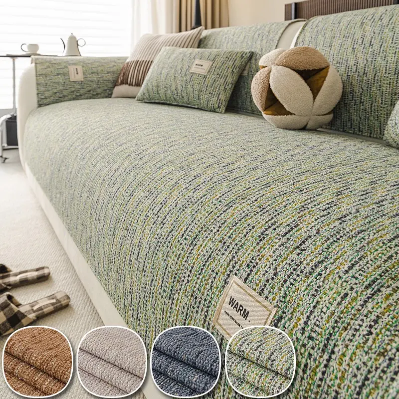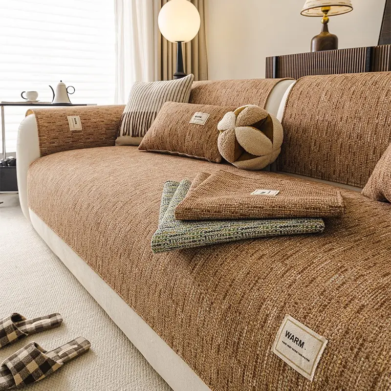 1pc Warm Label Chenille Sofa Cover, All Season Non-Slip Sofa Slipcover, Pet-Friendly Furniture Protector, Machine Washable Couch Mat for Living Room Home Decor