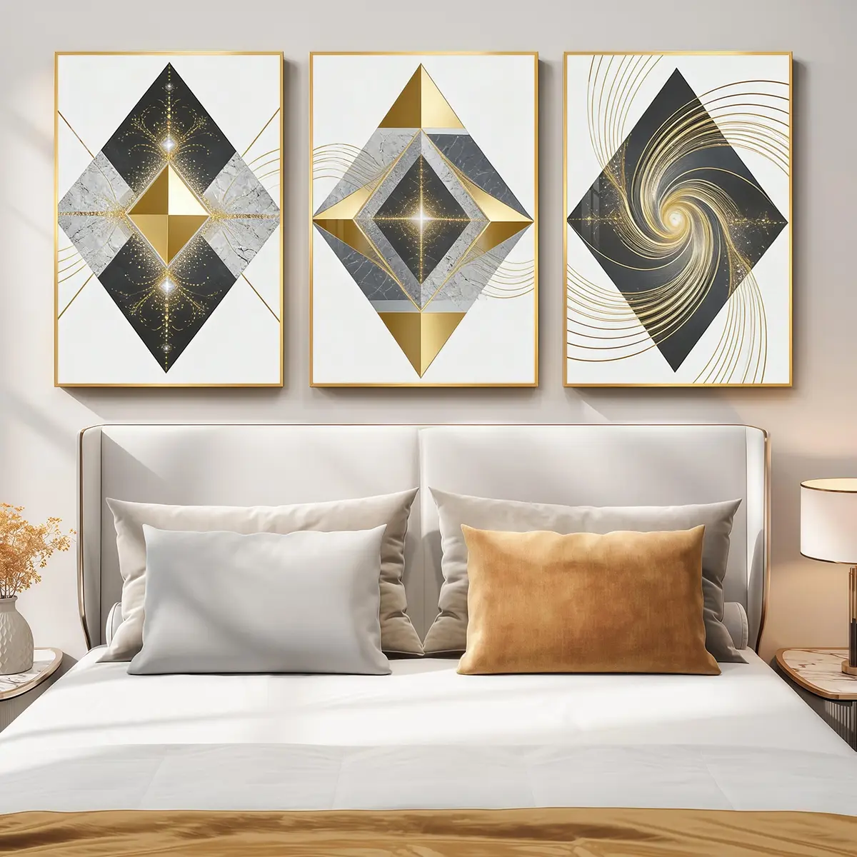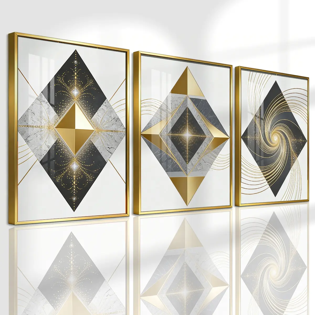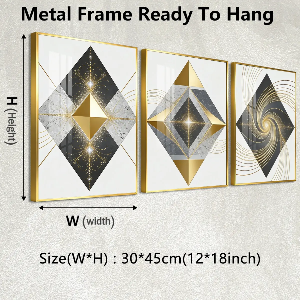3 Counts Aluminum Alloy Framed Painting, Abstract Geometric Gold And Black Art Pictures, Home Decoration For Living Room, Bedroom, Office, Restaurant, Hallway Wall Decor, Odorless Print Artwork, Luxury Perfect Gift For Friends And Family
