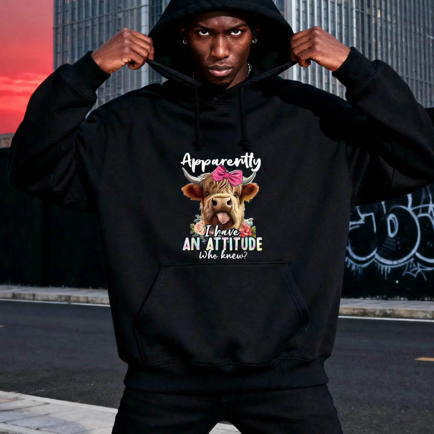 Looking for a hoodie that’s cute, funny, and cozy all at once?This Highland Cow "Apparently I Have an Attitude" Hoodie brings all the personality you need.The bold cow graphic adds instant charm, while the soft fleece lining keeps you warm and comfortable through fall and winter.