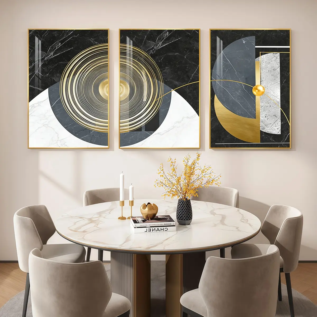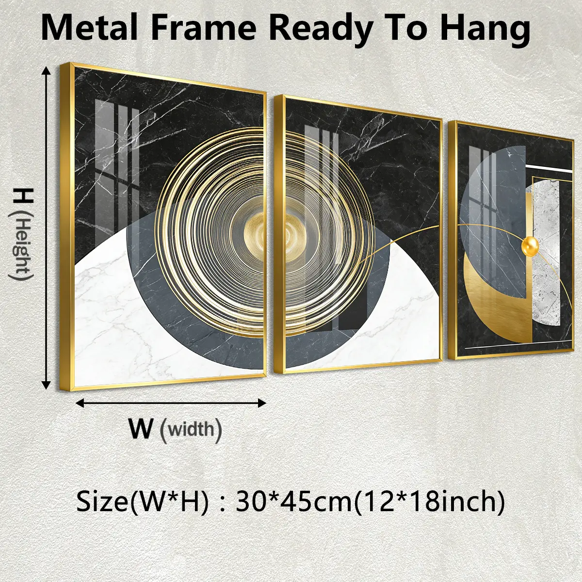 3 Counts Aluminum Alloy Framed Painting, Geometric Abstract Gold And Marble Art, Home Decoration For Living Room, Bedroom, Office, Restaurant, Hallway Wall Decor, Odorless Print Artwork, Luxury Perfect Gift For Friends And Family