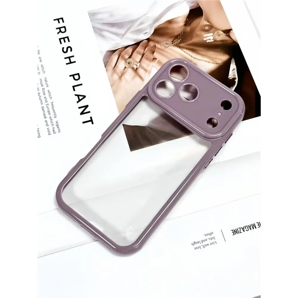 ·Premium Clear Back & Solid Color Frame: Combines a crystal clear PC back with soft TPU bumper in various solid colors (matcha green, purple, pink, etc.), maintaining the original beauty of your phone while adding a stylish touch.