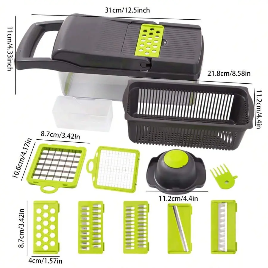 Use this set for chopping, grating, and shredding. It's perfect for onions, potatoes, and other vegetables. The green PET material ensures safety and durability. Save time and space in your kitchen. Dishwasher-safe for easy cleaning. Ideal for travel and meal prep.