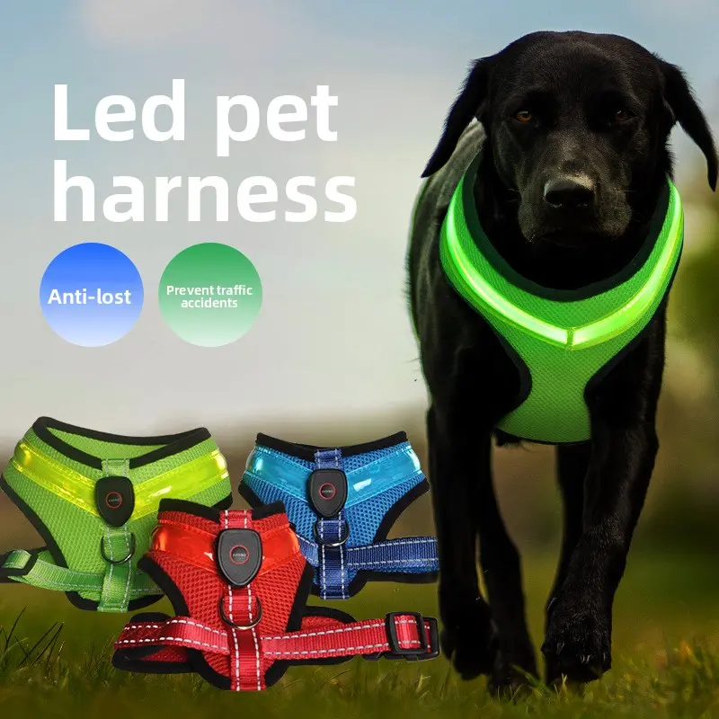 LED luminous pet harness, glowing and flashing at night, USB rechargeable, direct supply for dogs and kittens