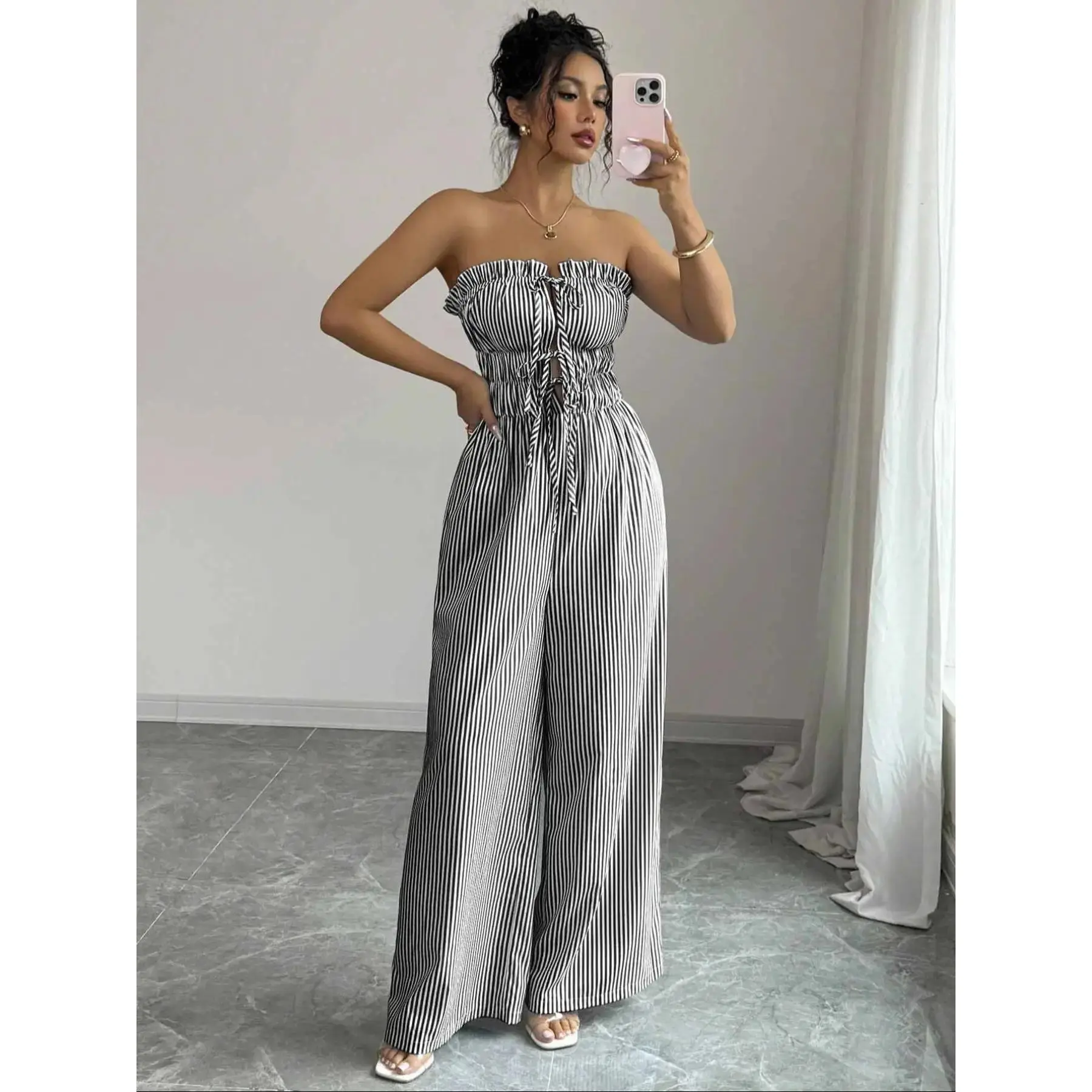 [Striking Stripes]: Adorned with bold stripe patterns, adding a fresh and dynamic aesthetic that differentiates it from typical summer outfits.