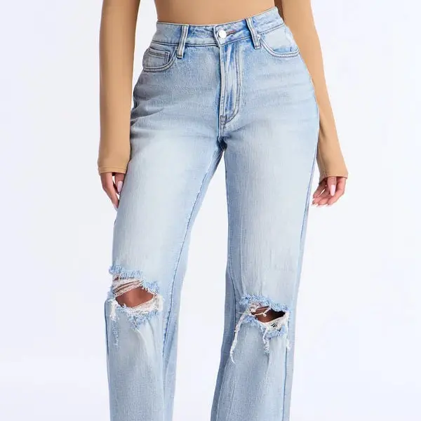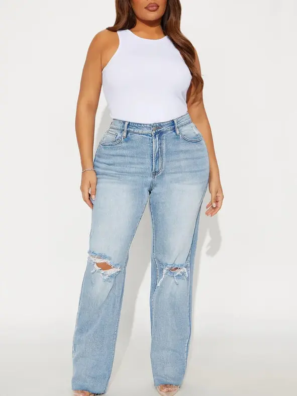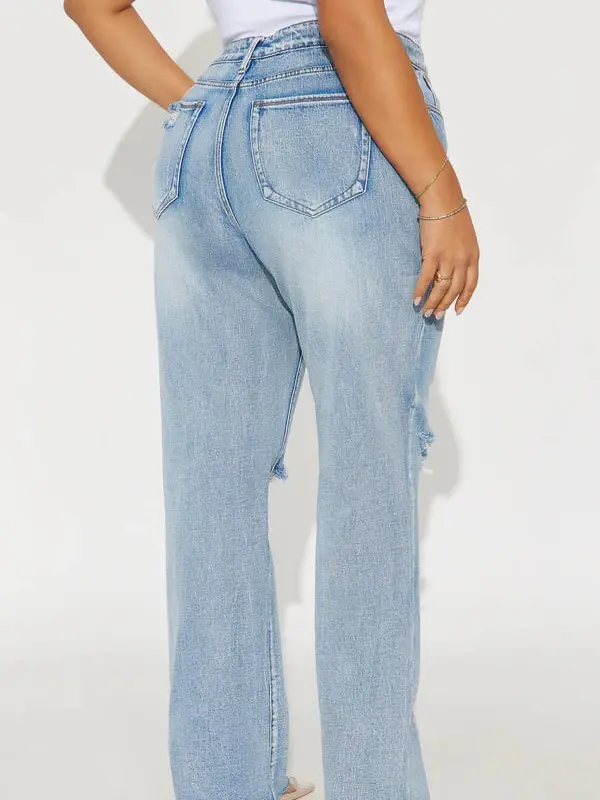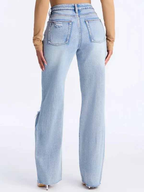 Petite As You Please Ripped Straight Leg Jeans - Light Blue Wash