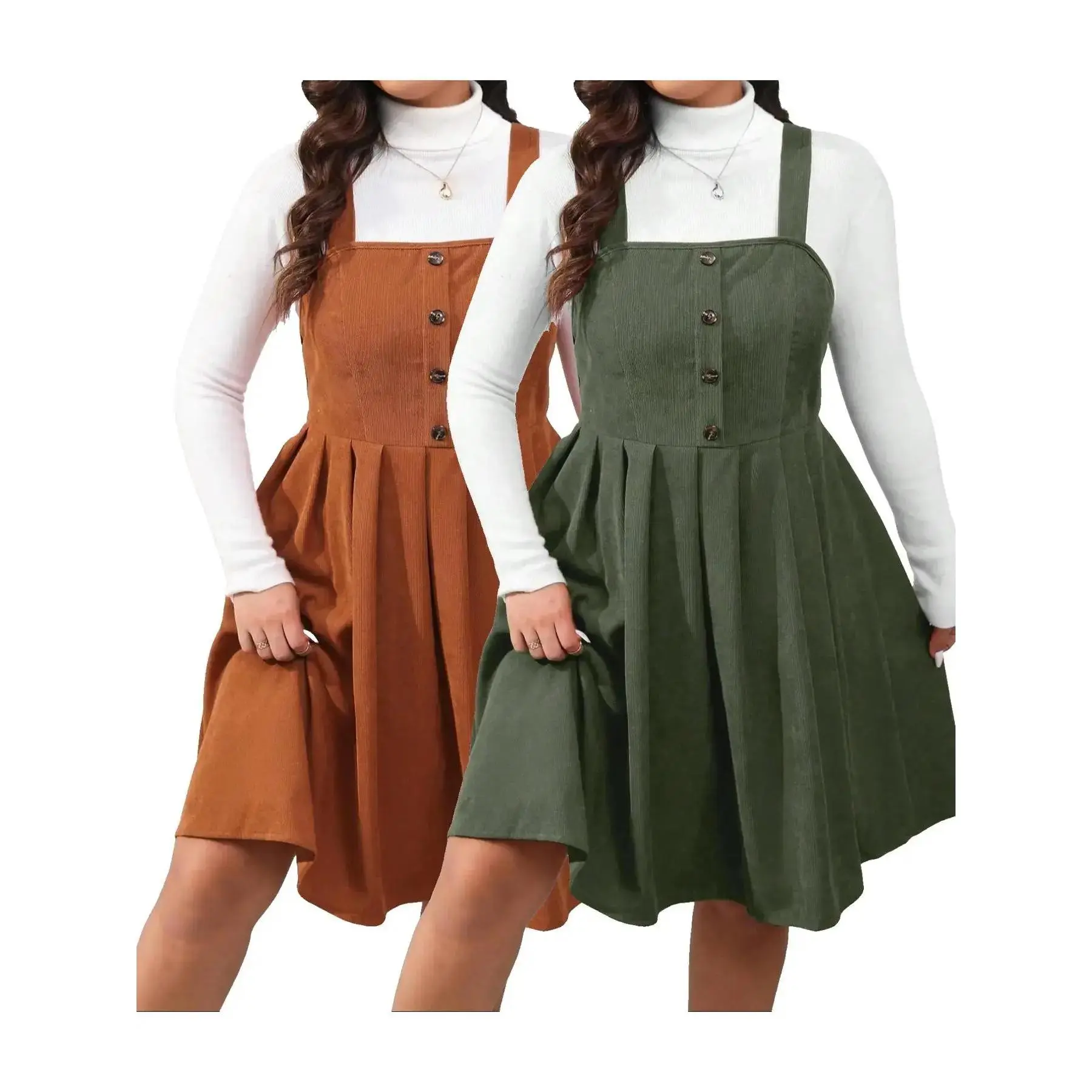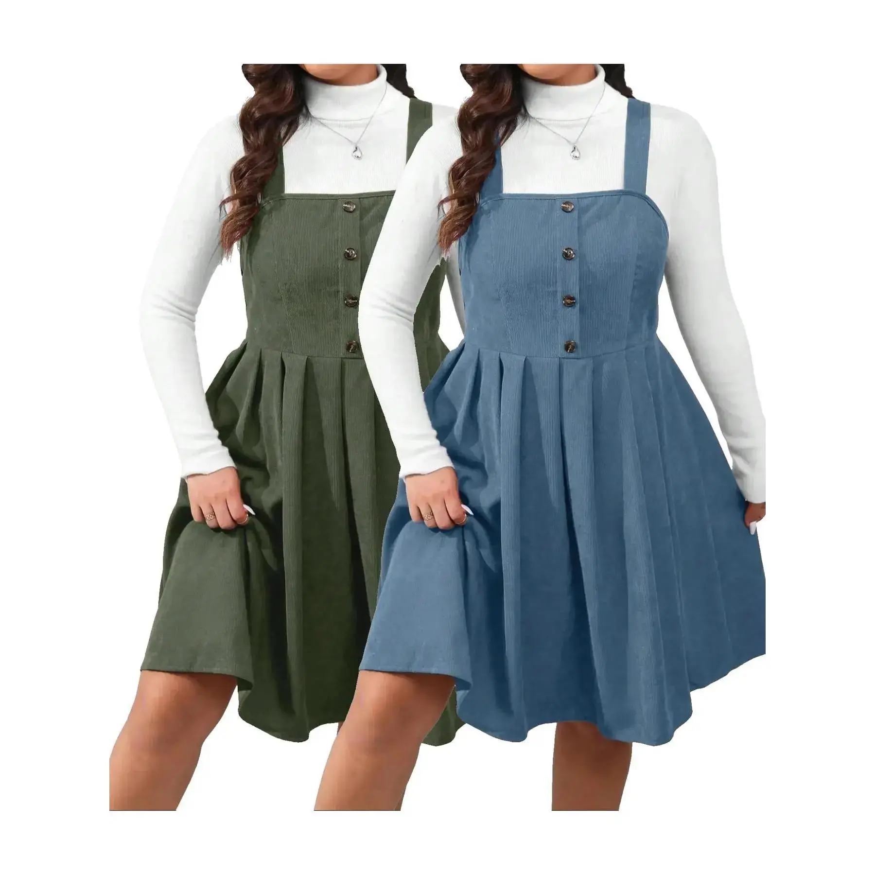 Plus Size Button Decor Pleated Pinafore A-Line Dress, Casual Sleeveless Tank Dresses for Fall & Winter Daily Wear Holiday, Women's Clothes, without Sweater