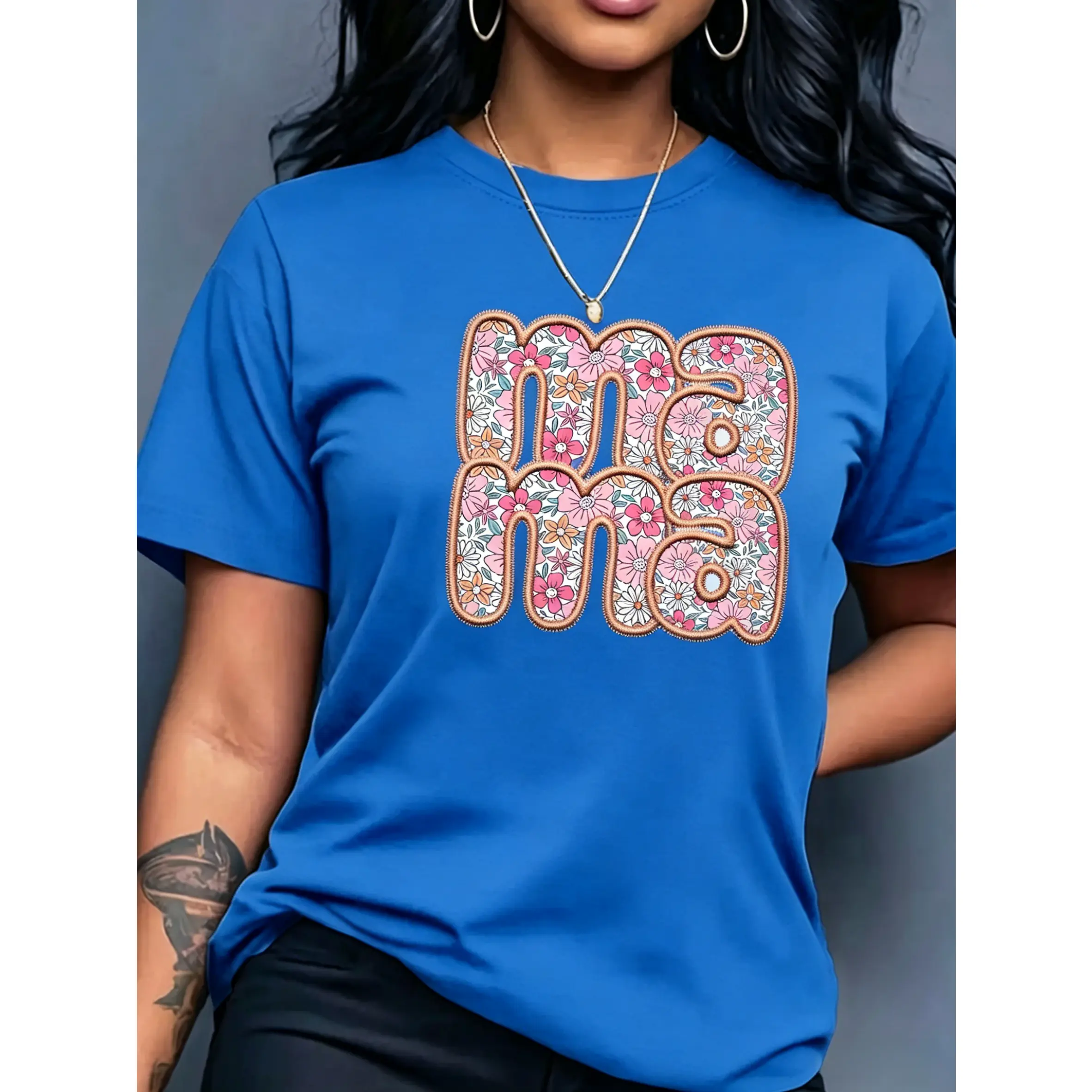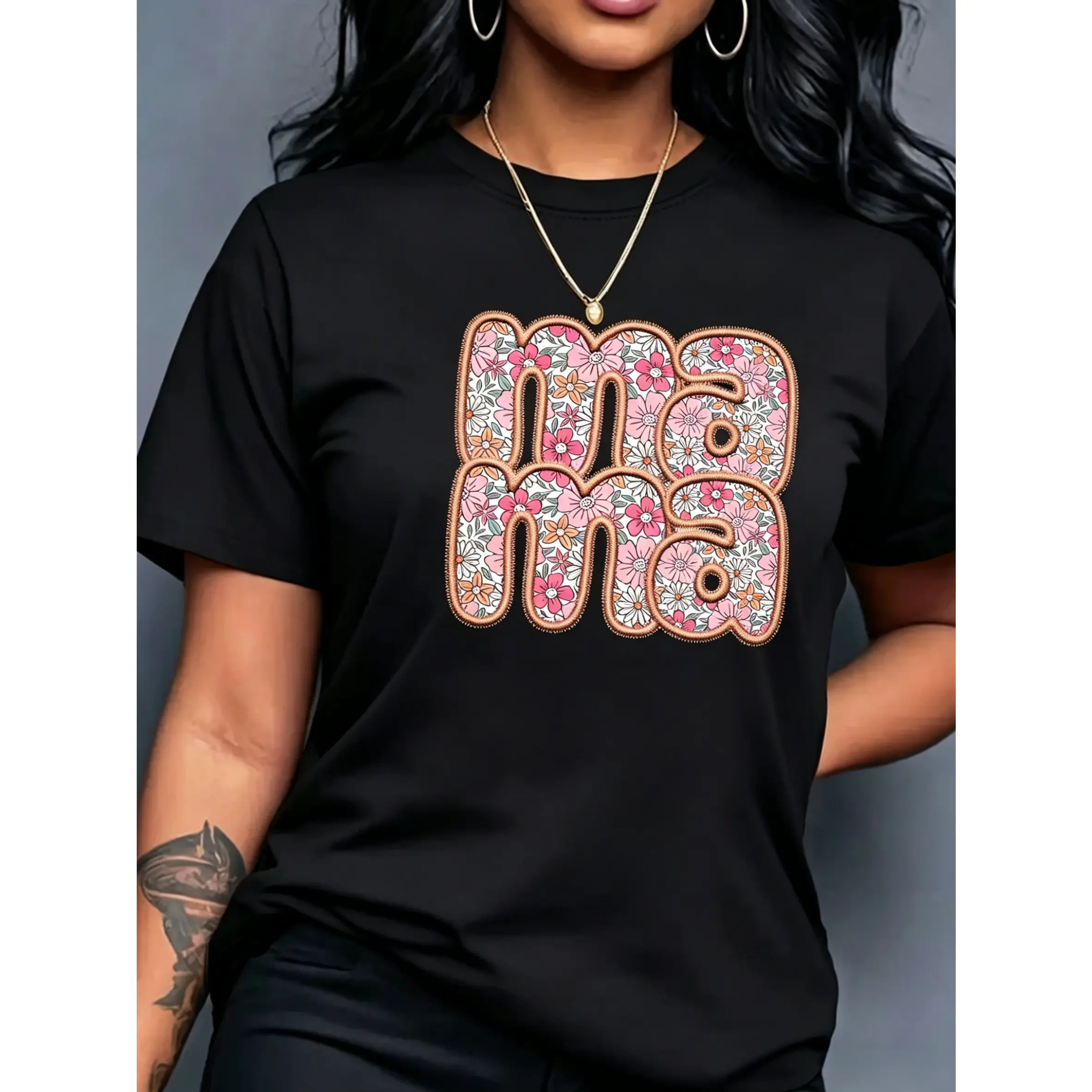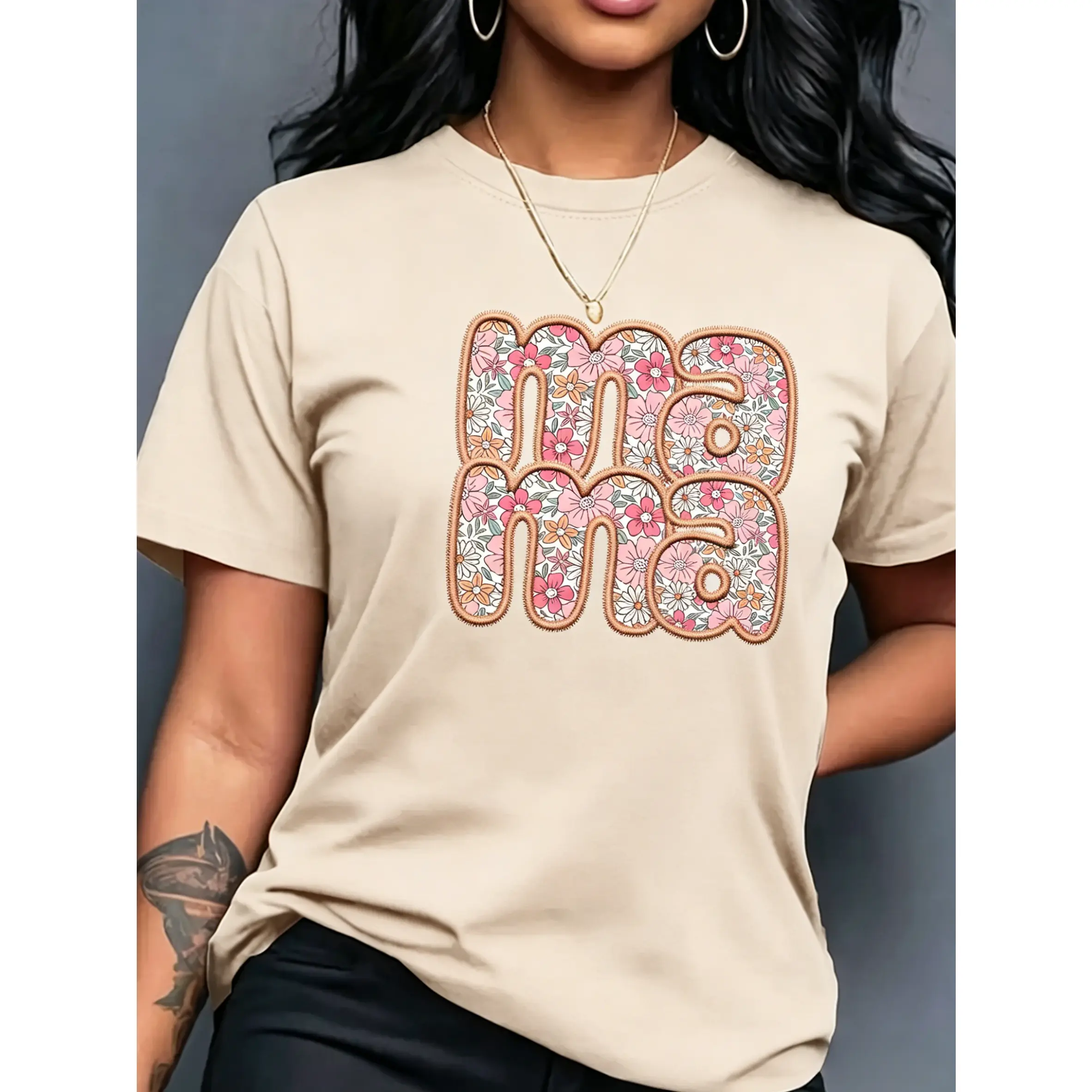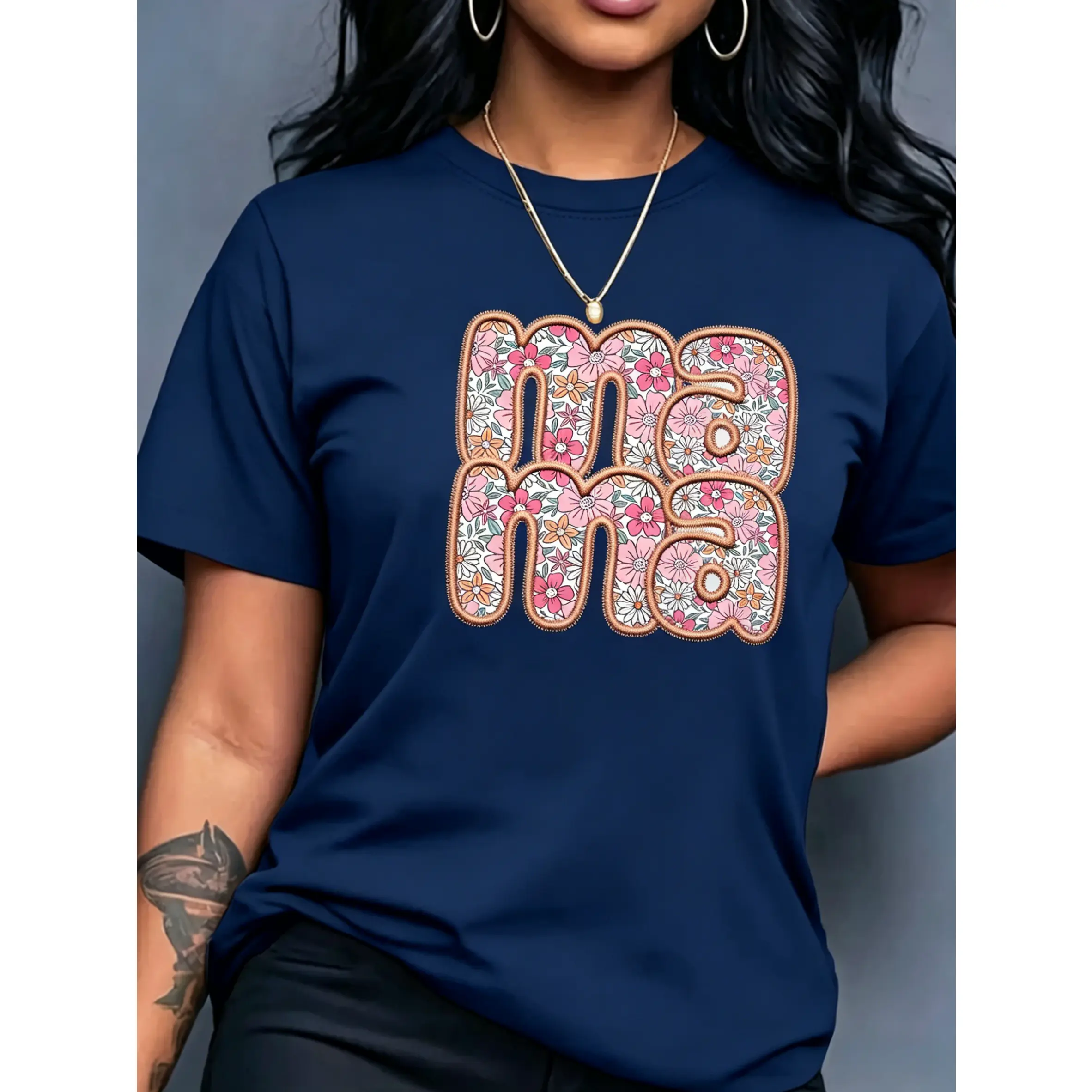 5. 100% cotton, printed T-shirt, short-sleeved casual round-neck top, women's spring/summer clothing, soft and comfortable, versatile for everyday wear, suitable for all seasons