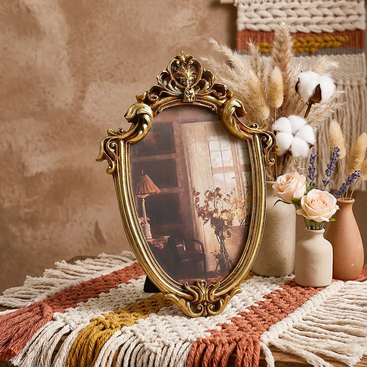 European Classical Photo Frame, Resin Material, Wall or Desk Mount, Home Office Decor, Festival Party Decoration