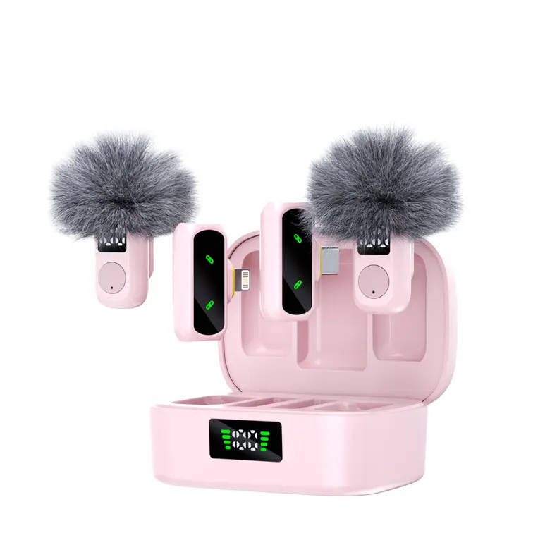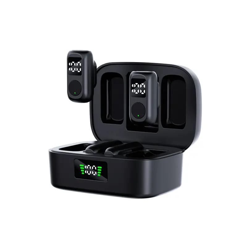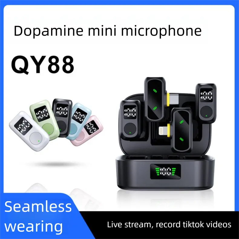 QY88 lavalier microphone, dual output, digital display, new model for mobile live streaming, noise-canceling reverb microphone