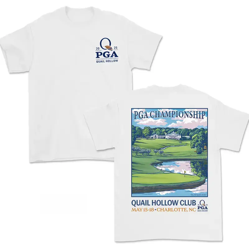 PGA Championship Quail Hollow 2026 Graphic Tees for Men & Women, Breathable Cotton Apparel, Golf Course Design with PGA Flag, Trendy Casual Gift for Golf Lovers Top Streetwear Summer