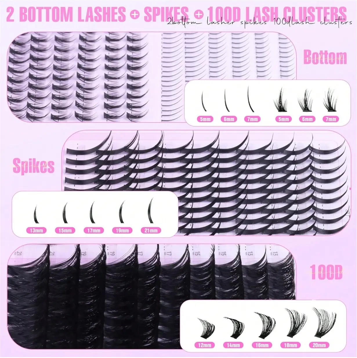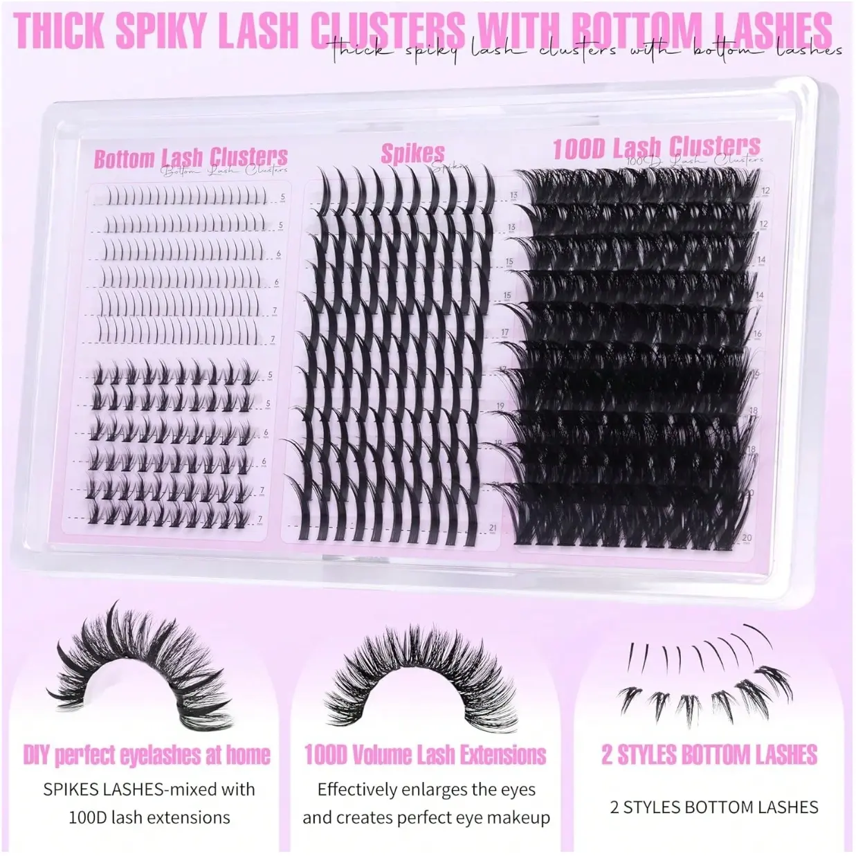 ·DIY Spikes Lash Extension: Our revolutionary Mixed-styles lash clusters put you in the designer’s seat. The amazing D curvature spikes lashes clusters gives an instant eye-opening lift, mimicking professional eyelash extensions without the need for a technician! No more settling for one-dimensional eyelash clusters!