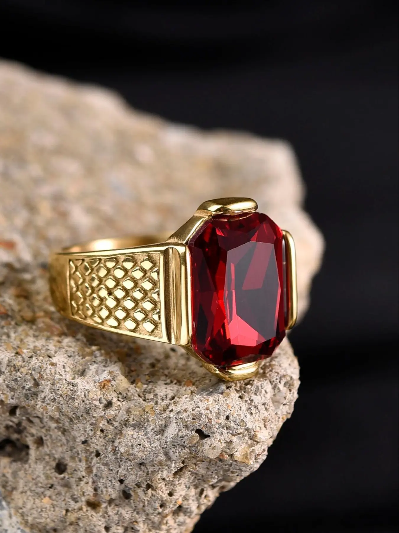 LuLuxury Men's Square Gemstone Statement Ring - Perfect Gift for Him, 316L Stainless Steel