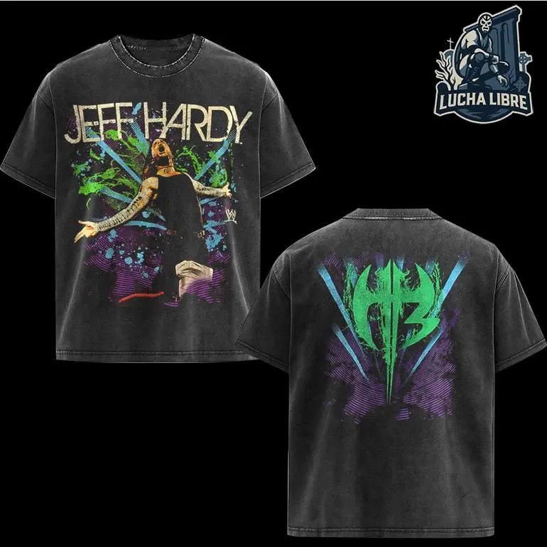 JEFF HARDY EXTREME ICON Premium American-Made Washed T-Shirt, WWE Enigma-Inspired Graphic Design, Short Sleeve Grunge Streetwear Top, Pre-Washed Cotton Fabric for Durability & Comfort – Men’s Wrestling Fan Shirt